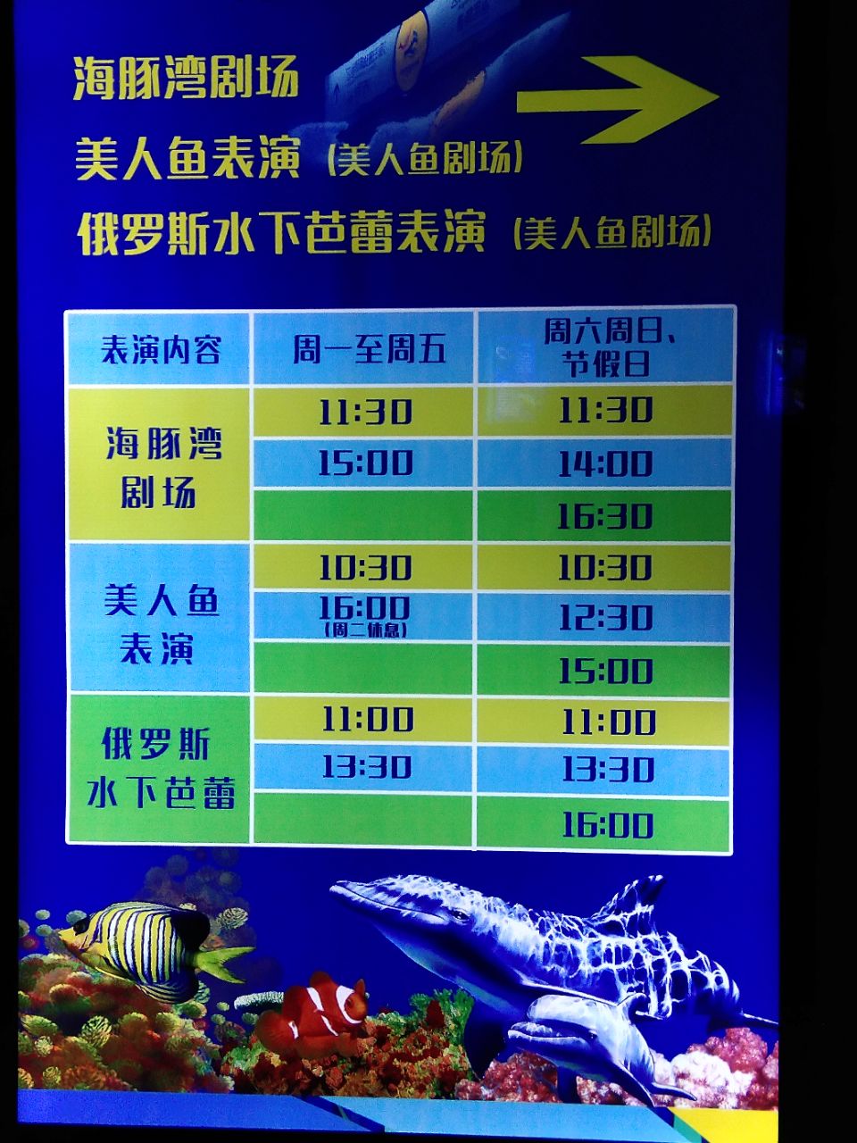 推荐大家去哦⊙∀⊙!,我买的学生票,还算可以啦。那里环境很好,各种指示牌也很到位,什么安全出口啊,各个表演的开放时间啊,还有有些小动物的注意事项。保洁人员开放时一直都有打扫卫生,我隔着玻璃去亲一只小海豹,保洁人员下一秒就擦了一下那玻璃,巨尴尬,还有吃奶鱼,其实我特别想喂它们,可是没钱啊。三大表演也很精彩,值得一提的是俄罗斯的水下芭蕾,真的超级优雅动人,值得一看哦。只是因为在景点里面,所以卖的东西价格不太美丽,总体很好啦,里面已经很完善了,小孩子会特别喜欢的。