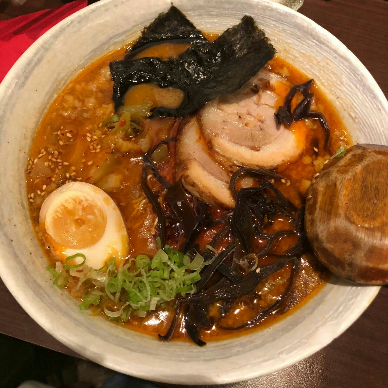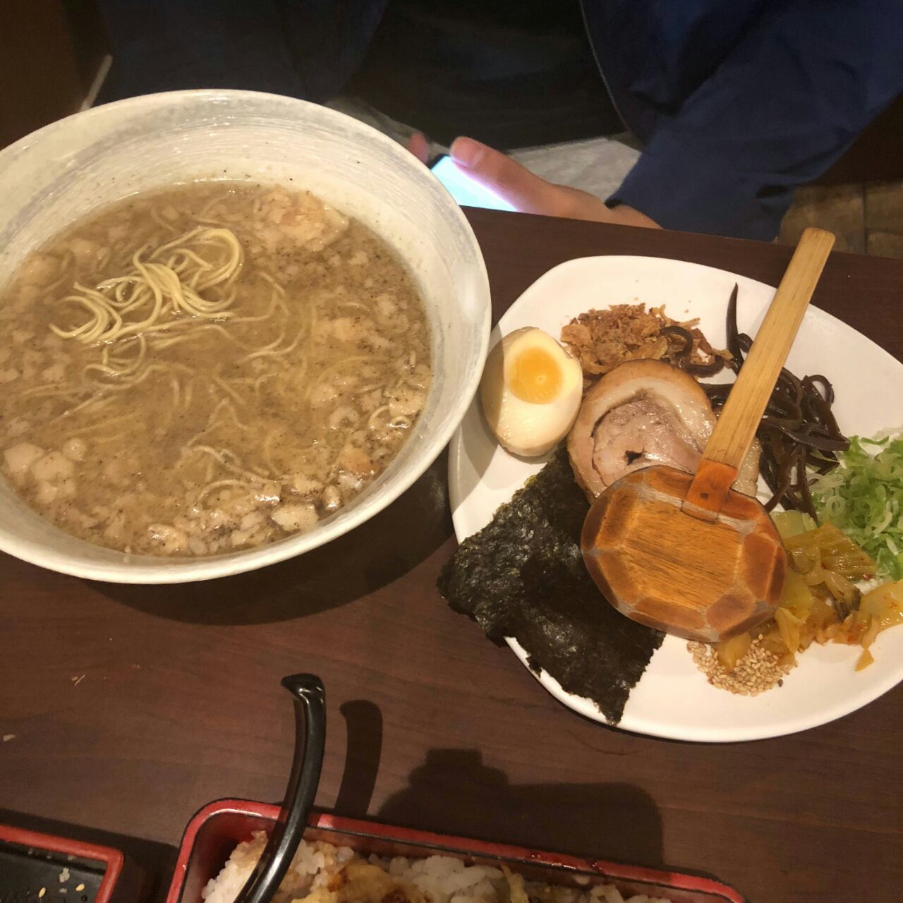 日本餐厅,豚骨面超级好吃,汤味道很棒,辣的不辣的都很好吃,我记得14磅左右一碗面。两个人共吃了55磅