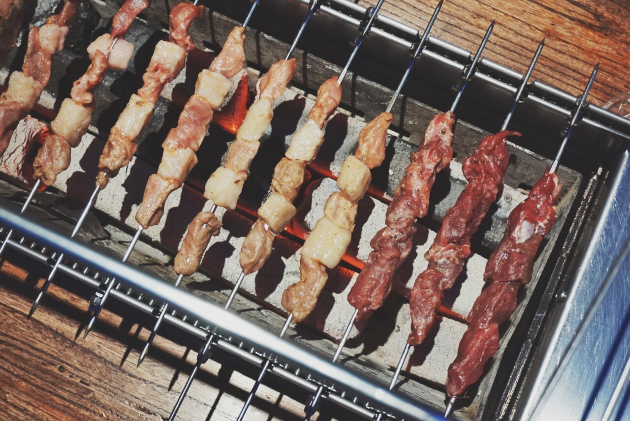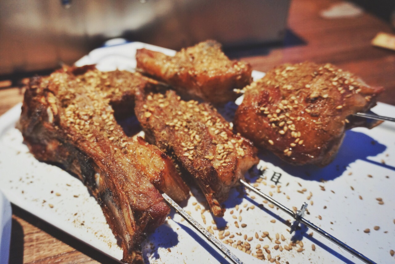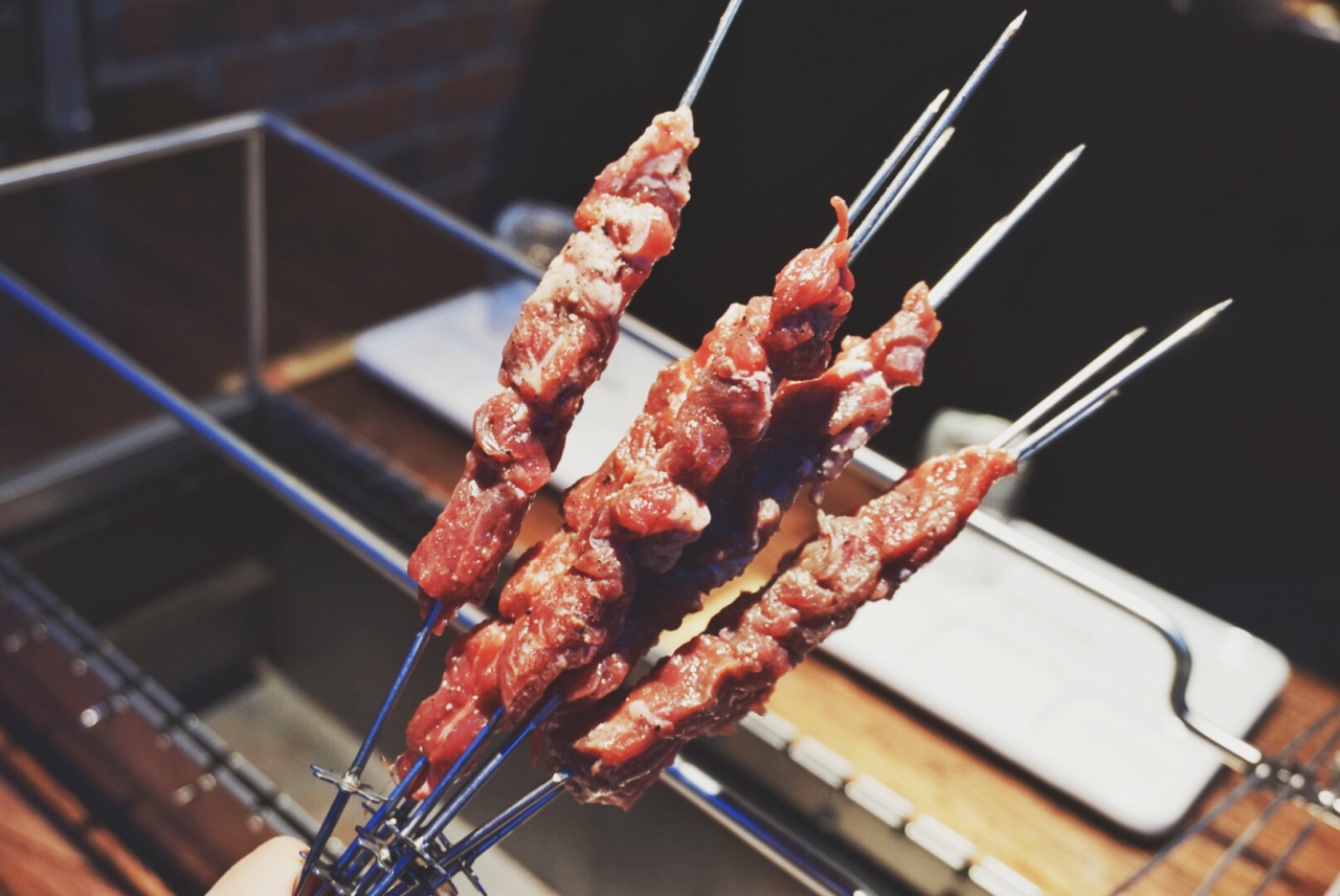 虽离地铁站有点远,也依然阻挡不了吃货的决心… 六点半门口排队已经铺铺满了… 听名字差点望而却步,因为我不吃羊肉啊啊啊, 但是没想到他家的烧烤都是超级赞… 自己会转的烤架很适合懒人,放着自己就会烤, 而且服务员会一直过来提醒什么时候快好了⏰, 各种烤串都不错哒,生蚝扇贝牛羊肉, 还有很多蒙古的特色,比如烤奶皮还有咸奶茶… 和烤串最配的还是hi 棒啦,西柚味的好喝… 就喜欢喝点小酒撸个串, 谁知道明天和意外谁先到来…