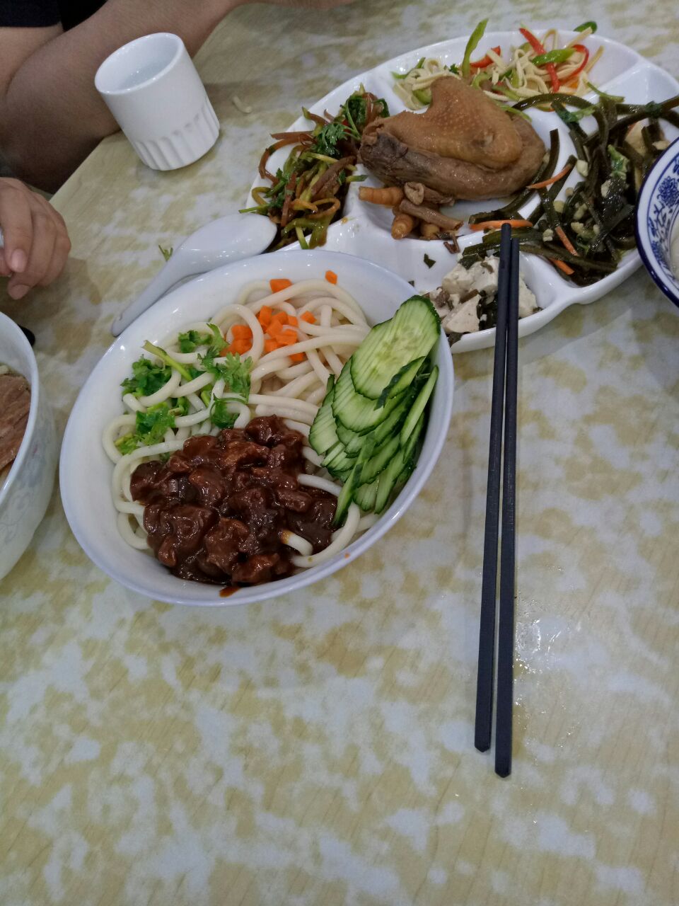 很好吃的潍坊面条,有黄黄的鸡蛋饼切的丝,鸡肉丝和鸭肉丝,还有糖蒜片还有憨肉片,类似午餐肉和肉丸子很好吃的潍坊面条,有黄黄的鸡蛋饼切的丝,鸡肉丝和鸭肉丝,还有糖蒜片还有憨肉片,类似午餐肉和肉丸子。这个店的位置靠近中百商圈。顾客很多。