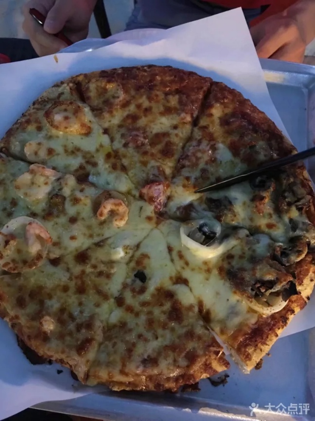 Yellow Cab Pizza (长滩S2店) 长滩的网红店,在沙滩边上,位置还蛮好找的,小店不是很大,四五张桌的样子,但门头还蛮显眼的,来的时候店内一个客人都没有,还质疑了一下,非要去找另外一家,绕了好几圈没找到,最后就放弃了,到这家店刚坐下就开始陆陆续续的上客人了 他家的价格也不算贵,铁盒冰激凌和四季披萨算是必点的两样,所以就根据大众推荐点了,服务态度还蛮好的,披萨也很快就做好 铁盒冰激凌有多种口味儿可以选择,我选了草莓味儿,蛮大的一盒,草莓味儿浓郁,奶香味儿也很重,里面会有草莓的果粒,不会特别的甜腻,还蛮喜欢的 四季披萨是四种口味儿拼成的,有海鲜、牛肉、夏威夷和美式香肠,几个人一起来吃,可以满足每个人的需求,披萨饼不薄,但是也不属于厚的那种,拿起来软塌塌的,味道还可以吧,芝士味儿很浓,很多国内的披萨店也都是可以做出这个水准的,比这个好吃的也吃到过不少,所以没有被惊艳到 随便吃吃还是可以的吧,他家的价格也不贵,性价比比较高,铁盒冰激凌要比披萨好吃很多,店内有准备中韩菜牌,不会英文的话点餐也很方便