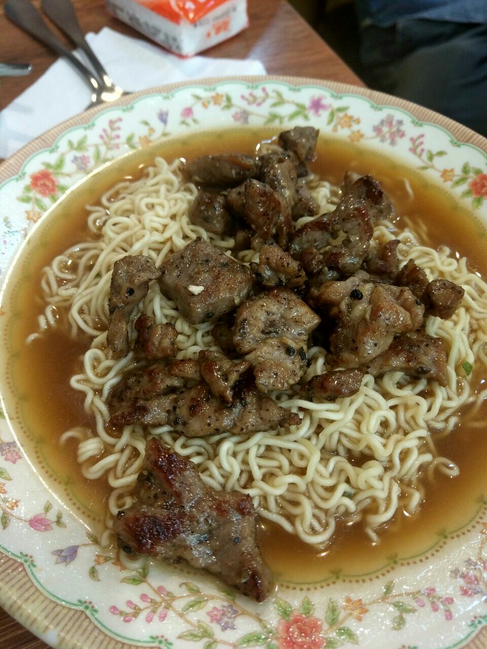 这家店虽然在小巷子里,但是装修都不错,干净简约的风格。点的黑椒牛粒,黑椒味道浓,牛肉很嫩很软,面条就是杯面的味道偏硬。同伴点的套餐,斋面,配一杯热咖啡(还挺大杯)和一份西洋肠多士才37。总体来说味道都很好,但我一个女生觉得还是只吃了六七分饱,也许是我胃口大哈哈哈哈哈哈,可能要多点一份。咖喱酱也很好味道。唯一不好的是,这家店只开到下午5点半啊,不能吃晚餐[撇嘴][撇嘴]