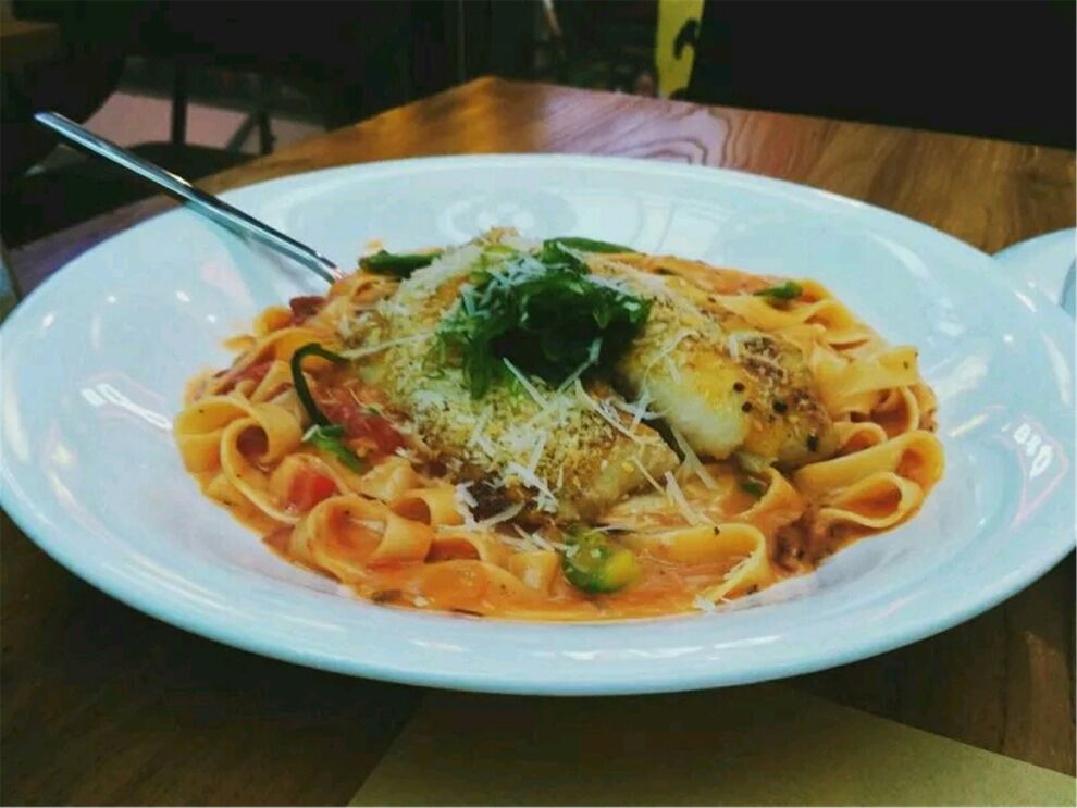 冬阴功味道的意大利面绝对属于强推的类型,酸辣口味的意大利面真的是独一无二,而且里面的料也很多,...用泰国料理的操作手法去做的西餐,冬阴功味道的意大利面绝对属于强推的类型,酸辣口味的意大利面真的是独一无二,而且里面的料也很多,贝壳肉鱿鱼圈等等。