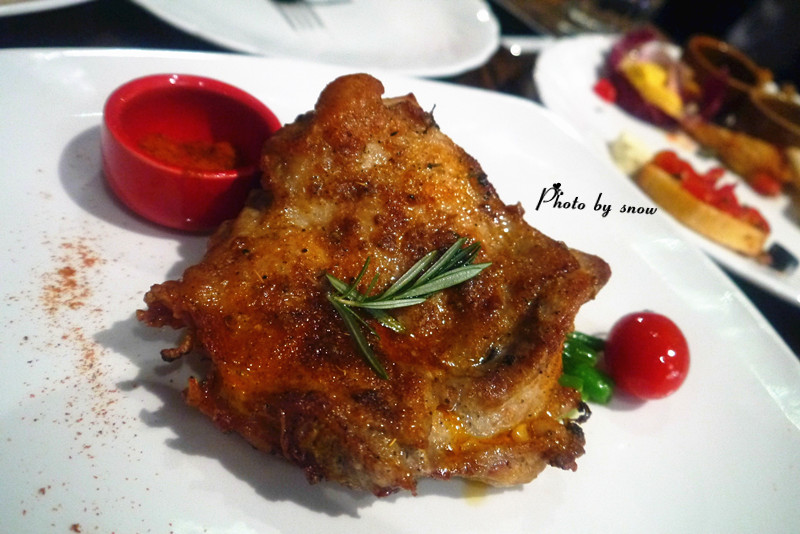 自打环球港开业时就很想吃这家店 这次在大丸吃了 斯比特花园 店名起得好 店内的环境也透露着花园气息 【前菜组合拼盘】 前菜内容丰富 tapas类型的小食 比如有三文鱼、牛肉、杂果之类的,配合面包干 还有少许水果沙拉 【牛肝菌蘑菇汤】 有牛肝菌的清香 口感浓郁 香浓鲜美 喜欢 【香煎鸡排配蘑菇酱】 鸡排不算厚但很大块 烤的很嫩 淋在上面的酱汁很好吃 【烤丹麦皇冠猪肋排】 三根色泽艳丽的猪肋排 肉已经炖的酥烂 旁边搭配的是烤苹果 酱汁是酸甜口感的 感觉有点过重了 吃不了甜的人不太会喜欢 【披萨】 芝士拉丝效果很棒 选择了薄底 上面有菠萝和培根 【蓝莓芝士蛋糕】 口感细腻 芝士味浓 香醇厚实 好吃不腻