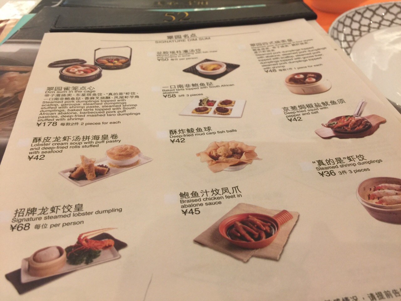 一直来这里吃的是晚餐!这次和同学聚会尝试了午餐,有很多小点心,做的很精致,里面材料也搭配的不错!最爱招牌龙虾虾饺!不过猪仔肠粉、咸水角还是没有深圳和香港的那种味道!桌子太近,隐私不够,随便吃吃还是可以的!功大于过!