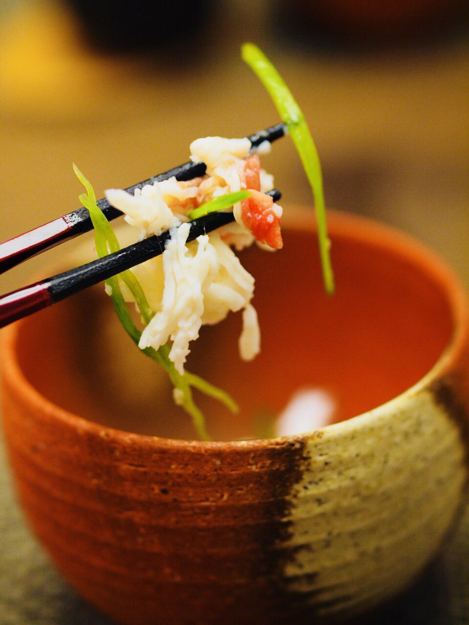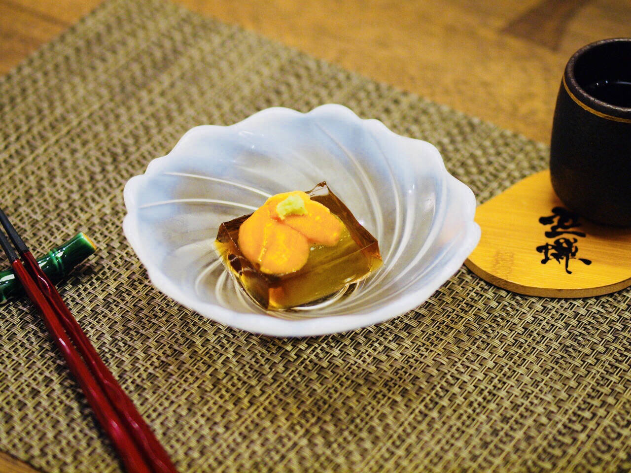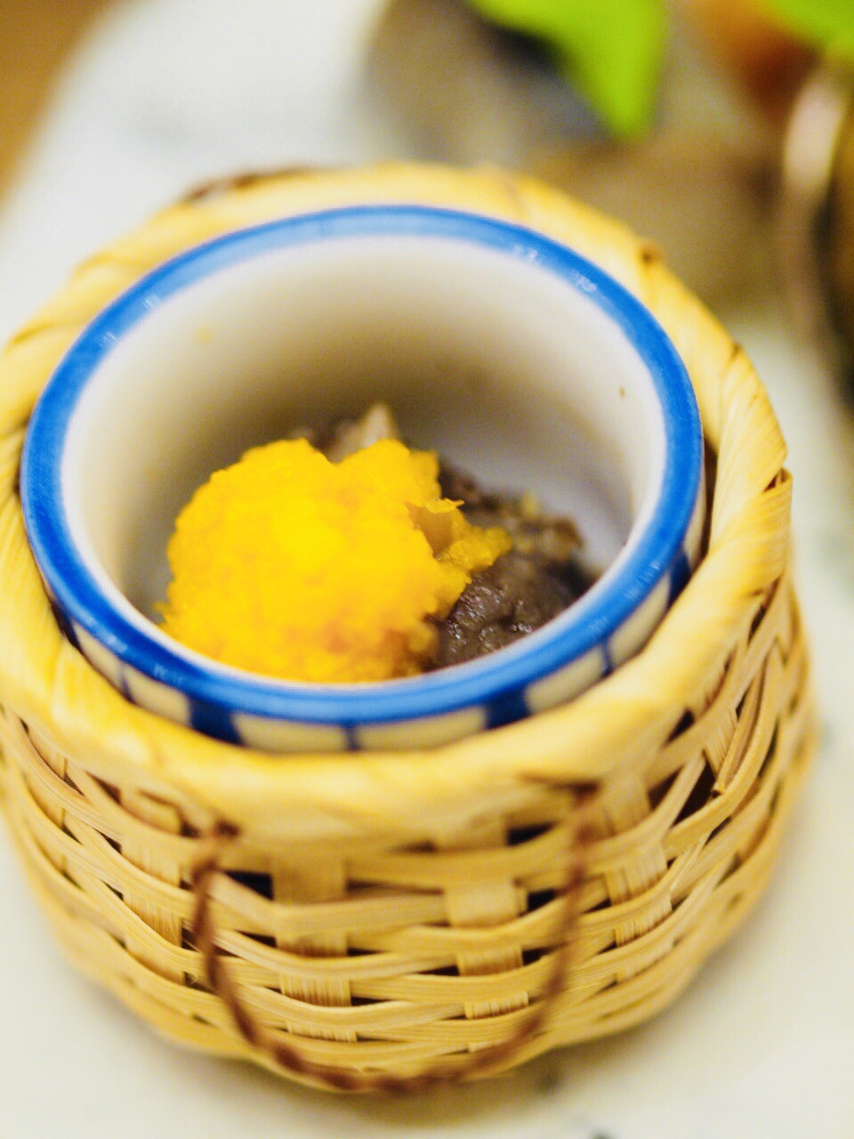 地理位置,在外滩源益丰广场内,对面就是半岛酒店,隔开一条马路就是外滩,也算是黄金地段之一。怀石料理也讲究不时不食,30年的怀石料理惊艳和多项荣誉奖项,这些都让我有期待! 怀石料理要做的地道,原材料很多不惜血本从日本空运而来,为了就是零距离的享受到更为original的一种怀石文化的体验。 鮟鱇鱼肝,新鲜鱼肝要经过多道步骤带能品尝到一种入口即化,没有腥味,清口的感觉,厨师介绍说经过蒸煮、冷却再冷冻到定型,加了调味醋和枫叶酱,打开味蕾是首位,这道菜做到了,还有淡淡的请酒味,营养价值更丰富。 马山椒煮秋刀鱼,大多数时候吃到的都是烤过的秋刀鱼,用马山椒腌渍的秋刀鱼还是第一回。小小的辛辣带来不同的口感,秋刀鱼就变得有点与众不同了。 胡麻豆腐金目鲷,炉端烧店看到过金目鲷被炙烤的场面,整体通红,深海鱼,肉嫩刺杀就很受欢迎。汤头很关键,就是一个鲜字,而且用了日本柚,酸甜也好,清润也好,总之就是搭调。好吃上档次就这款。 杉板真鲷配伊势龙虾,鲷鱼是抱起来放炭火烤的,这样就让鲷鱼带有点杉木的的清淡香气,伊势龙虾,伊豆半岛的名物,盔甲红亮有硬度,肉质鲜弹,搭配了香甜的爆米花,别有趣味,层次感又递升了不少,有形有有味。 甜品蛮特别的,用柠檬加上日本柚子汁腌制的无花果,可能时间是最好的催化剂,服务员说整整24小时,整叫一个入味了得。还有特别喜欢的抹茶,是真的手工现磨抹茶,粉的颗粒感及其细腻,放在陶碗内,和风、禅意都有,配上南瓜奶油蛋糕,很好。 其他还有造物,就是刺身三点盛和还有蒸鱼是柚子蒸鱼子,温度上更体现美味;酢物是黑猫牛肉配秋葵,秋葵是好东西,牛肉也处理的相当鲜嫩。主食是一款赤豆鳗鱼饭,鳗鱼系活鳗,味道就是不一样,搭配了味增汤是极好。