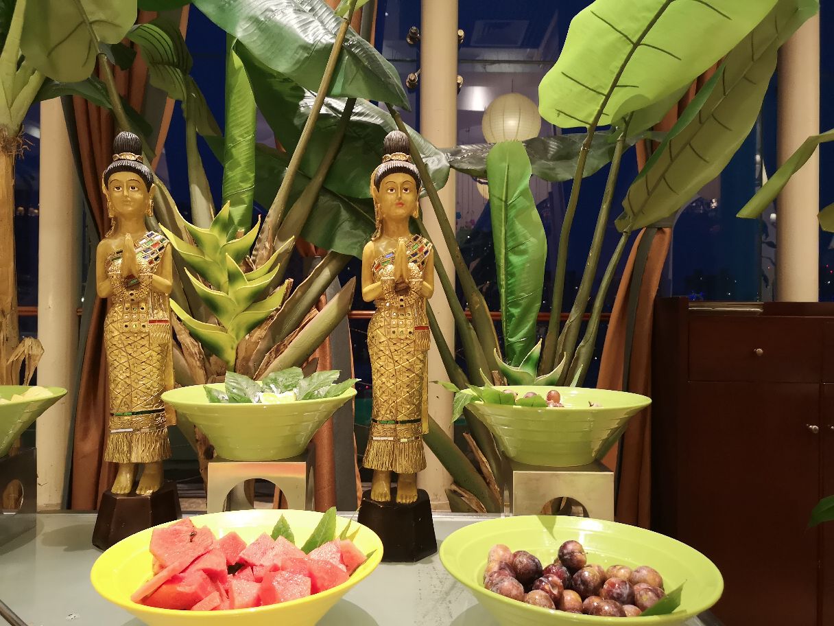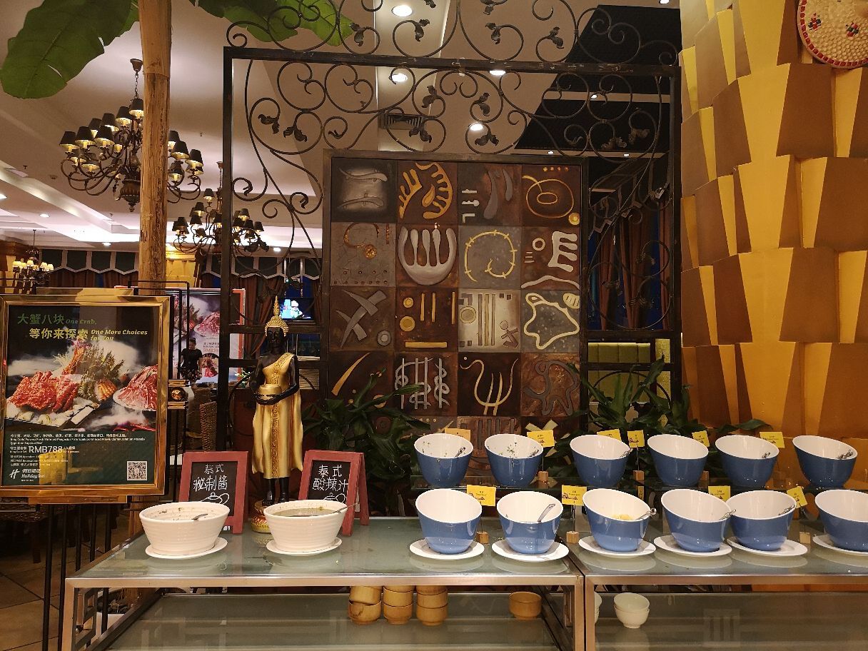 酒店活动团购非常便宜。冰粉不错,还有冰淇淋,糕点以及各种冷饮在假日酒店西楼19楼上,环境不错,现场有驻唱歌手氛围很好,泰餐有冬阴功,菌汤等锅供选择,送的泰国虾很大,寻常虾可以随便取食,秘制调料有2种味道都不错。冰粉不错,还有冰淇淋,糕点以及各种冷饮。酒店活动团购非常便宜。