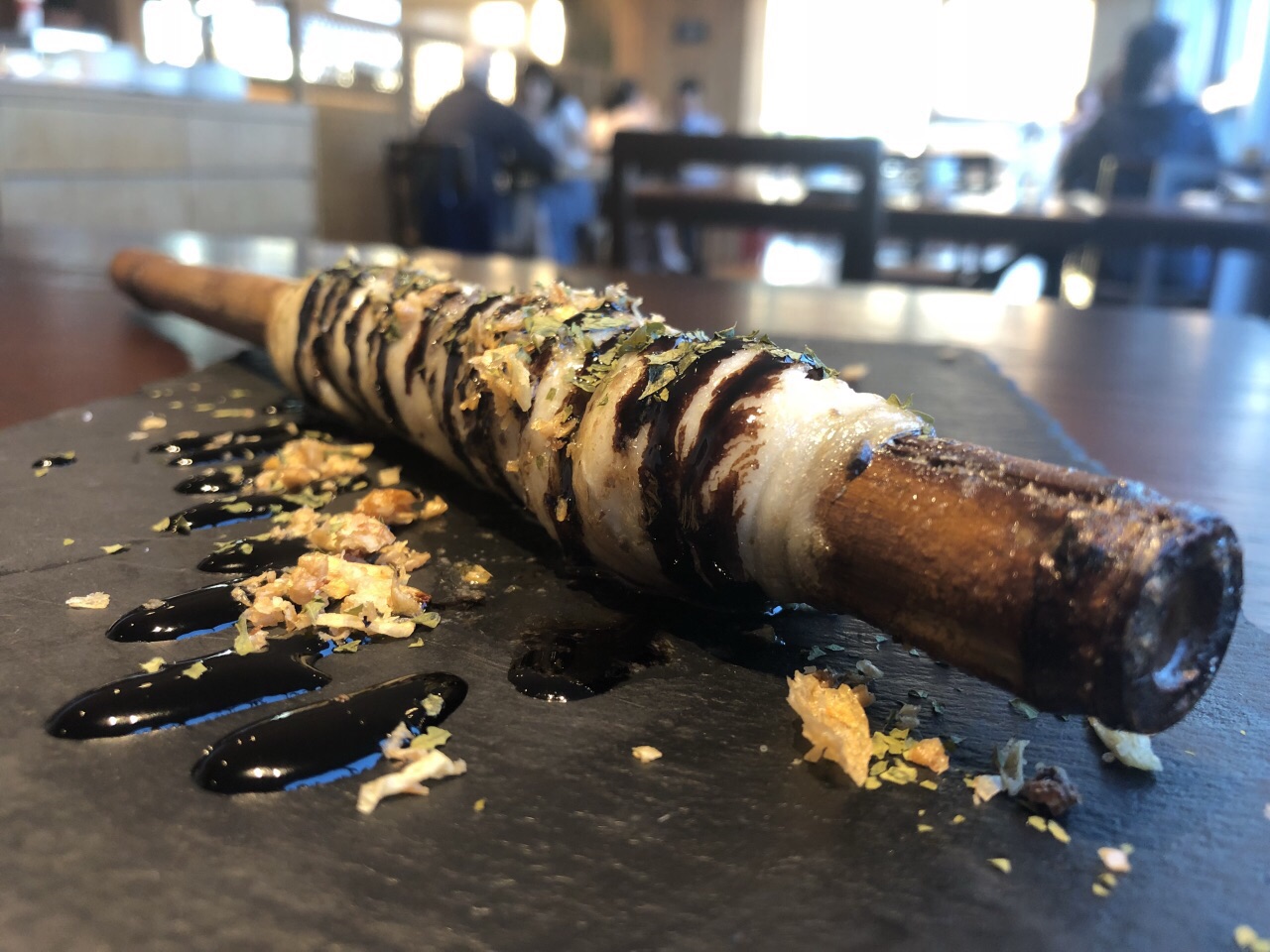 位于MUJI酒店的四层,车可以停在北京坊地下车场,消费后拿消费单可以抵扣车费,前来用餐需要提前至少两天左右预定。餐厅为保证环境并没有接满所有预约,使得就餐空间更开阔更舒服。缺点是空调给的不足,尤其吃寿喜锅子时被热的够呛。还有个不足就是餐厅的服务员服务水准不够好,还需要经过培训得以提高。 ◎寿喜烧,398元,价格有点贵 分海鲜和牛肉两款 点的牛肉款,搭配日本进口鸡蛋,可以直接饮用,味道不错,汤头淡淡清甜,与食材口感完美结合,互不干扰。 ◎卷烤带鱼,记不清价格了,大约50元。 卷在一根粗竹棍上,还是有点创意,只是鱼肉有点腥。