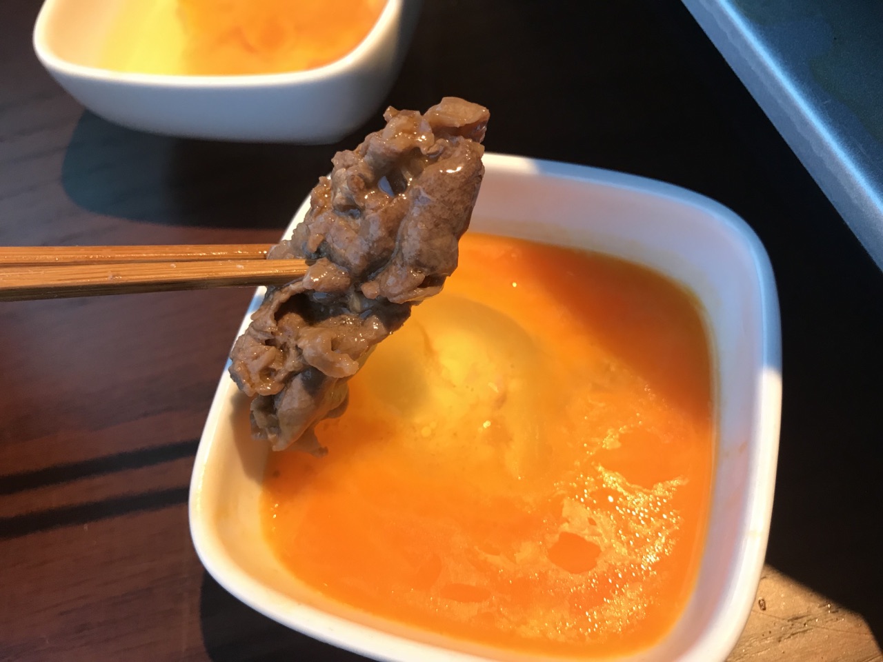 ...的牛肉款,搭配日本进口鸡蛋,可以直接饮用,味道不错,汤头淡淡清甜,与食材口感完美结合,互不干扰