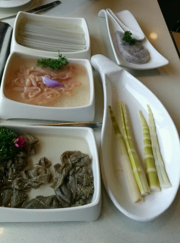 锅底很人性化,选择的种类很多,麻辣酸甜一次性全部满足。牛肉很新鲜,轻轻一刷就好了,煮久点也不老,每次必定。鸭肠处理的很干净,吃起来非常清脆。毛肚很细腻,爽脆弹牙。虾滑也很不错,其它的菜品也非常的新鲜,好吃。
