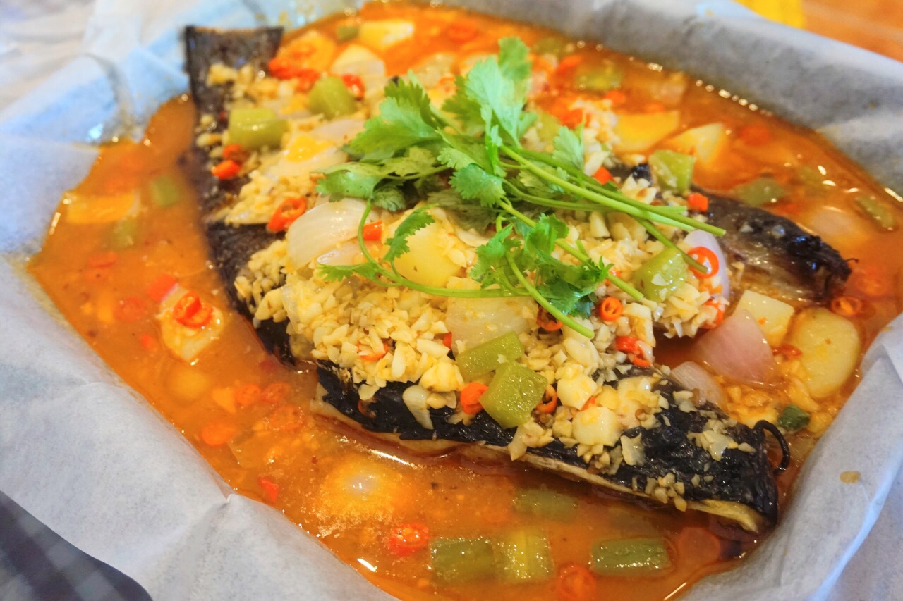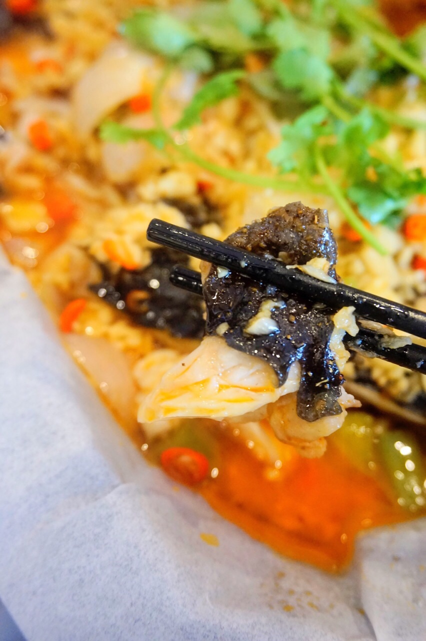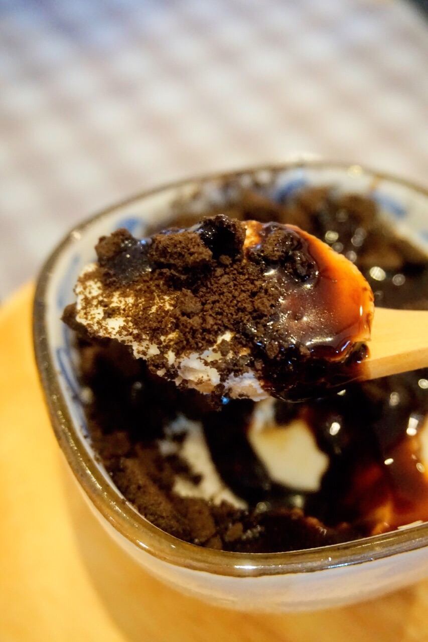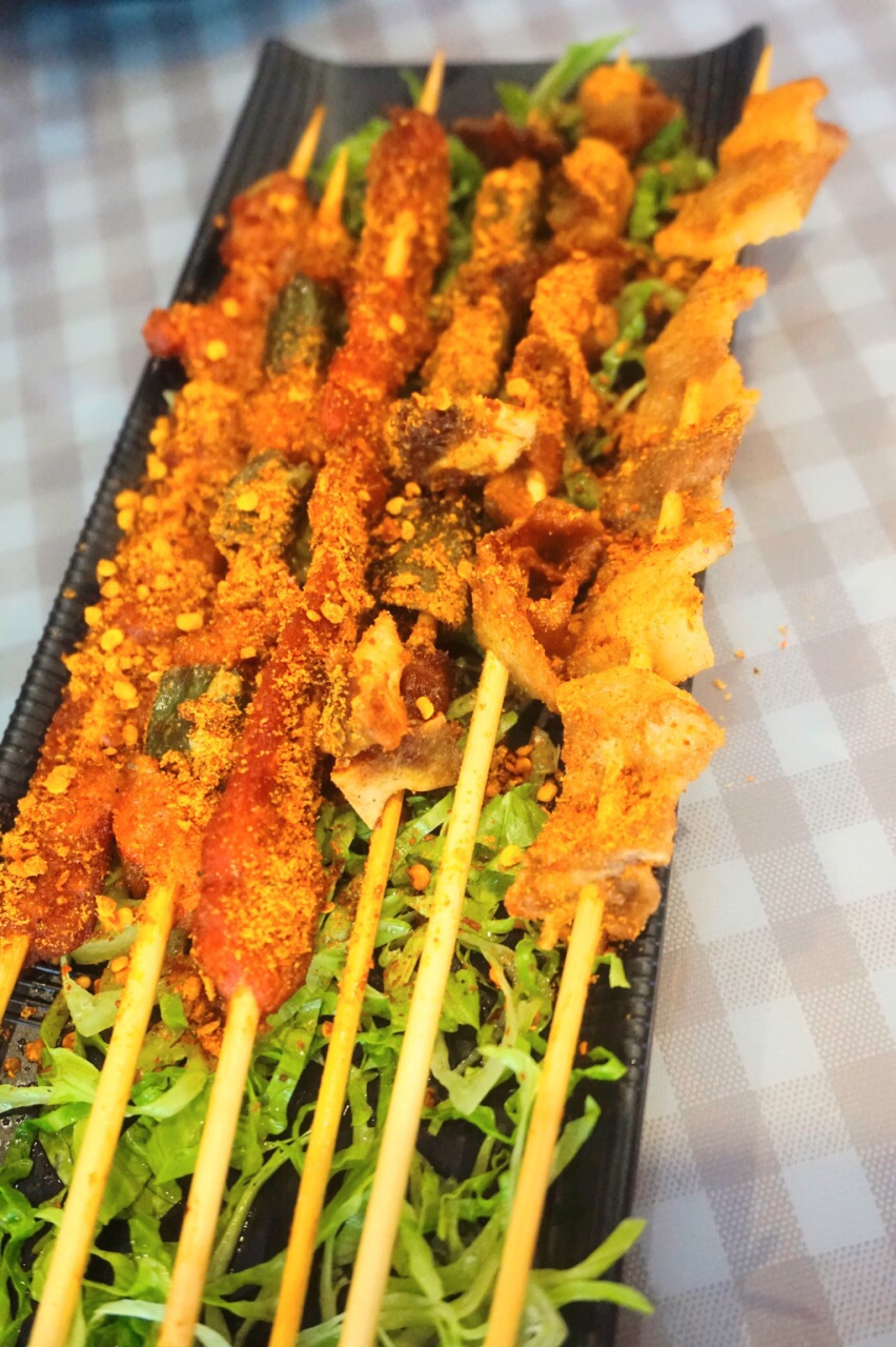 很喜欢的一家烤鱼,之前也来吃过。这次约了朋友一起已经改了菜单了。很多没有吃过的品种正好可以试试。 【蒜香山椒味】黔鱼98一份。应该算是他家最不辣的一个口味,真的很喜欢这个,鱼皮烤得焦脆里面还是软软嫩嫩。蒜香浓郁入味,吃完还可以加三样配菜,15块钱三样的分量超级足,选的【千张】【豆腐】【方便面】方便面煮出来真的很好吃,豆腐也很嫩但是需要多煮一会儿。 【干锅鱿鱼须】32,这个的分量不多,但毕竟还是很便宜的,里面的土豆不错。【油炸串串】这个串串有够大的,尝了一串牛肉,很香呢。 【奥利奥奶冻】他家的小甜品做得也不错,奶味十足,口感细腻,还是我喜欢的巧克力奥利奥口味,棒棒哒。 最后付款确实性价比高,人均60+。
