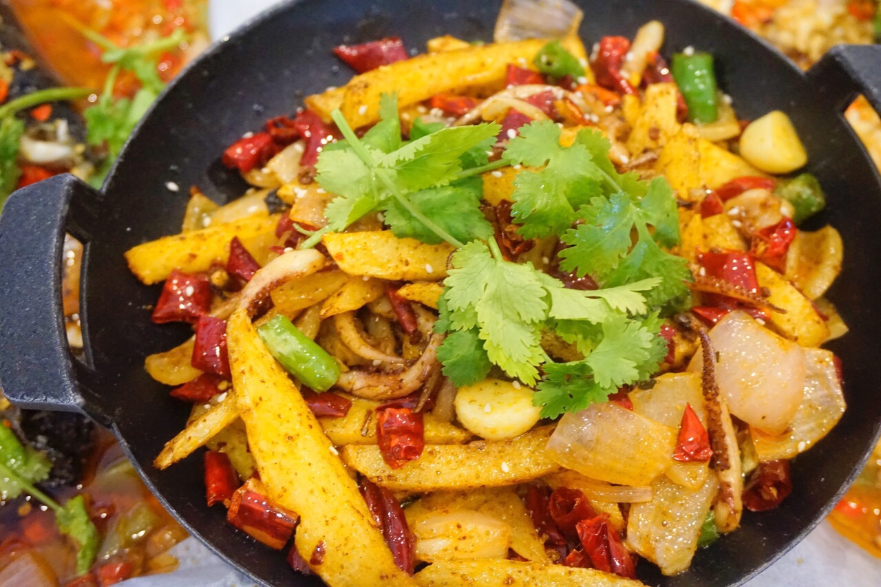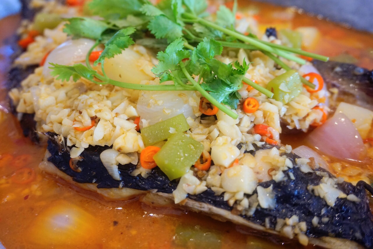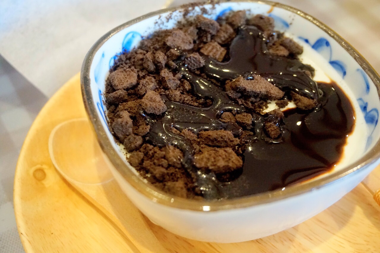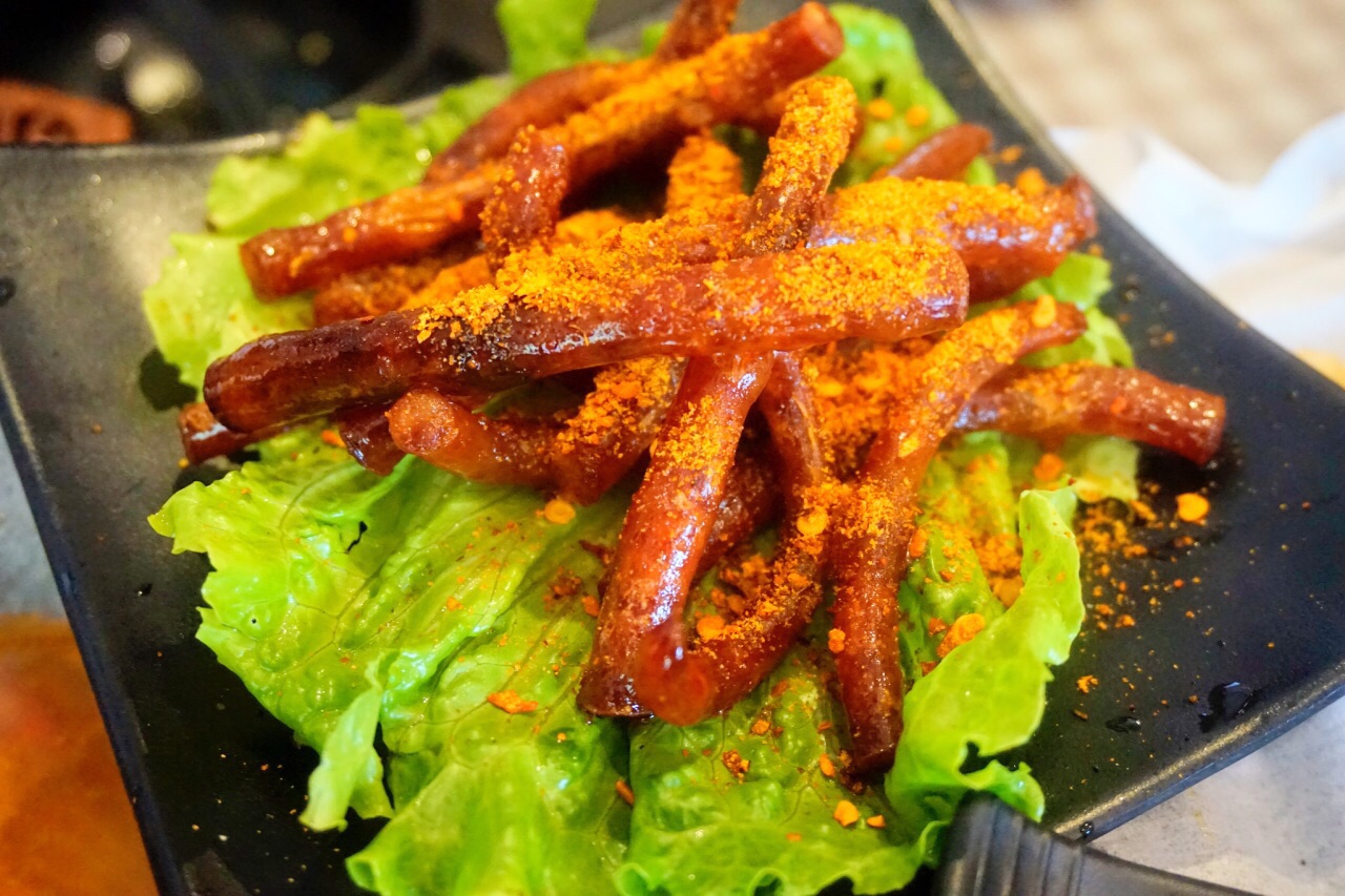 很喜欢的一家烤鱼,之前也来吃过。这次约了朋友一起已经改了菜单了。很多没有吃过的品种正好可以试试。 【蒜香山椒味】黔鱼98一份。应该算是他家最不辣的一个口味,真的很喜欢这个,鱼皮烤得焦脆里面还是软软嫩嫩。蒜香浓郁入味,吃完还可以加三样配菜,15块钱三样的分量超级足,选的【千张】【豆腐】【方便面】方便面煮出来真的很好吃,豆腐也很嫩但是需要多煮一会儿。 【干锅鱿鱼须】32,这个的分量不多,但毕竟还是很便宜的,里面的土豆不错。【油炸串串】这个串串有够大的,尝了一串牛肉,很香呢。 【奥利奥奶冻】他家的小甜品做得也不错,奶味十足,口感细腻,还是我喜欢的巧克力奥利奥口味,棒棒哒。 最后付款确实性价比高,人均60+。