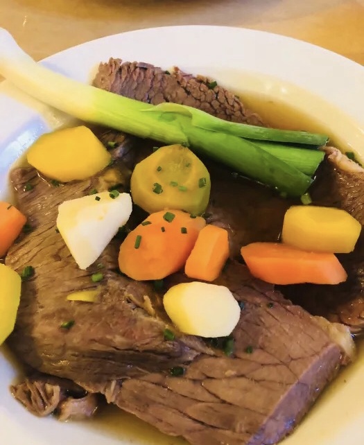 在奥地利最后一晚选了点评人气颇旺的一家餐厅,距离 酒店非常近,也怕其他餐厅没有预约会碰灰,就偷懒没 去商业大街觅食了,还没到店门就听到人声鼎沸,所幸 没有等候太久,就有了座位,一看国人真多,与一路来 鲜有亚洲人面孔餐厅形成鲜明对比。 依旧对菜单一知半解,凭感觉和喜欢的单词点完了单, 既对欧洲最后一餐满怀期待又隐隐不安。 首先上来的四盘菜让我大跌眼镜,他家的量让我误会上 错菜了,沟通后才发现图三图四都是图二#水煮牛肉#的 配菜。 当然接着所谓一人份的#肋排#也是大得吓死人参。 味道真的差强人意,以量取胜。以及戏码十足的服务 员,当我表达水煮牛肉很老咬不动时,胖哥哥带着感同 身受的表情立刻帮我去重新换一盘,后来端上来还深情 并茂地说自己去厨房亲自特意选了最嫩的牛肉,让我赶 紧切一块尝。讲真四块牛肉中只有一块非常嫩,其他只 是不太老而已,但看在胖哥哥诚意演技份上还是收下