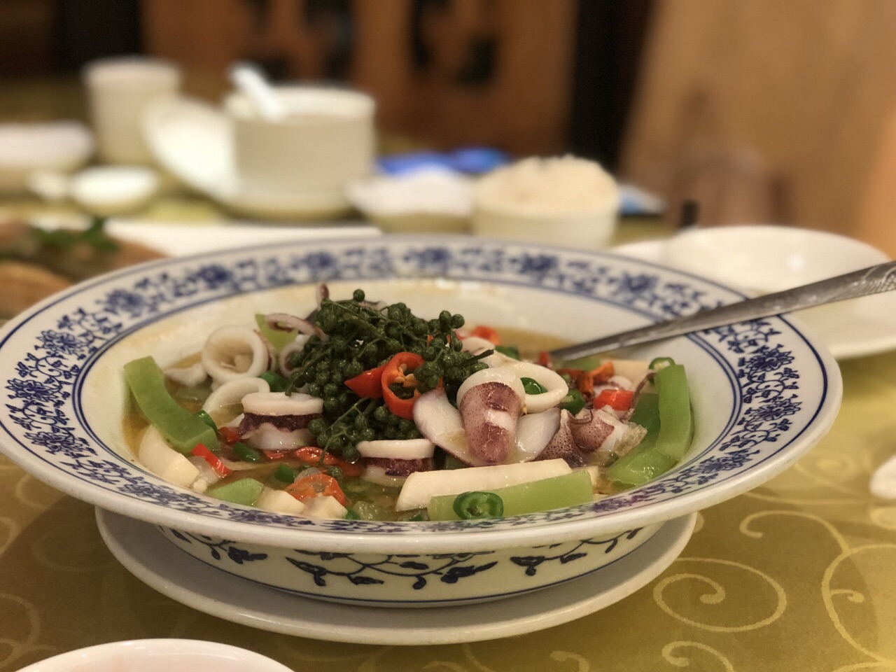 位置:海沧佳味馆,新阳新垵的悦实广场旁边!走过Kfc再过豪客来就是了,只是大门没有朝着马路,在后面比较隐蔽点!来过几次新垵但我依然找不到地方…好在Lg已经下班停好车在餐厅坐等了 推薦:水煮东山小管:虽然中午刚吃了水煮肉片但是我依然很喜欢这道菜,配菜是酸萝卜和莴笋,酸萝卜腌的很入味,搭配新鲜的小管,确实很下饭 干煎小黄鱼:摆盘很美丽~煎的刚刚好,也不会太油 金线莲肉泥汤:一人一盅,夏天喝这汤很适合 炒时蔬:上海青,很大一盘,刚好配米饭 服務: 非常热情,有自助水果