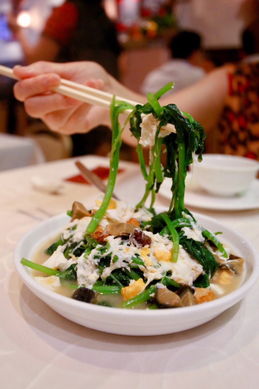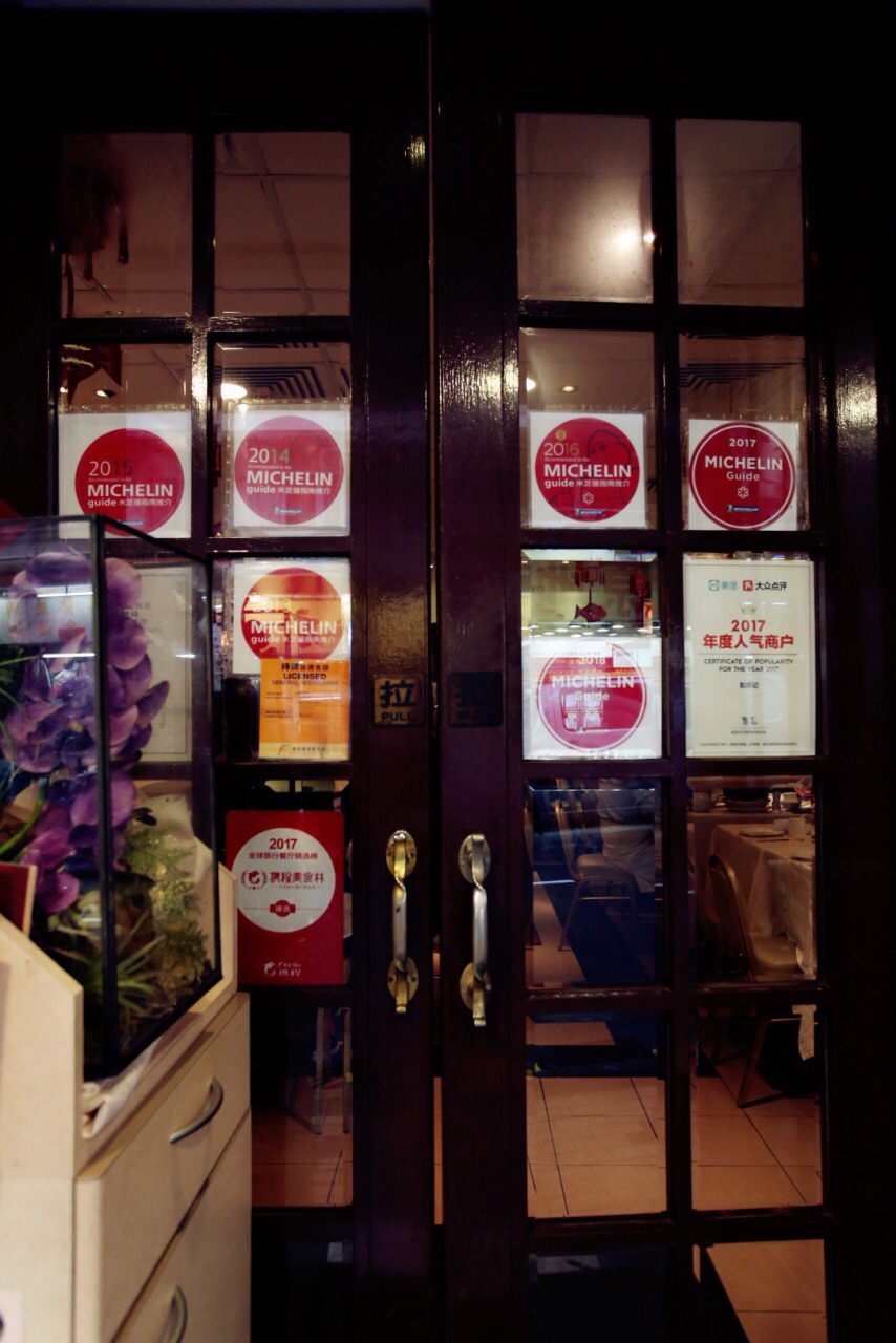 如果一家餐厅服务还不错,出品还能让我吃出住家饭的感觉,我真心觉得这是一家好餐厅。比如,彭慶記食家! [环境]在跑马地下公交站附近的一条街道上。他家的门面非常抢眼!除了醒目的招牌之外,沾满了米芝莲殊荣的门窗显得格外出彩。入内之后门店其实并不大。大概能容纳30人左右,但是令人兴奋的是终于不用坐狭窄的两人位了。因为这儿都是四人位。干净整洁的桌面,柔和的餐厅灯光,如果没人交谈,还以为是在西餐厅用餐。总之很惬意! [服务]是迄今为止我到吃的港餐厅中享受到的最好的服务。店内三位阿姨分工协作有条不紊。负责接待的不知道是不是老板娘(很有老板娘的范儿。哈哈~)很热情;另一位很干练,还有一位则很亲和。阿姨赠送的饭后甜品「红豆糖水」加了陈皮味道真的别有一番风味! [菜品]已经无法用各种赞美之词来形容了。好想给大厨一个深深的拥抱!在点菜之前有参考点评网上的推荐。秉着尝尝看的态度一探究竟。「蒜香排骨」作为招牌菜得到了大家的一致好评。果然群众的眼睛是雪亮的。吃货的水准也是相当的!排骨上的肉肥瘦相间且炸得香酥扑鼻。咬一口肉嫩多汁,蒜香味儿浓。第二道切不了错过的「姜葱鱼鳔煲」不知道选用了什么鱼,虽然只是鱼的下巴,但是肉质非常新鲜,洋葱作为配料选用了最嫩的部分,不仅鱼鳔味道十足,就连姜葱都已入味儿,配上一碗白米饭,这压根儿停不下来啊~少不了青菜的一定要试试这道「金银蛋苋菜」食材超级鲜嫩,咸蛋和皮蛋同煮我是第一次尝试,都是大颗切丁。连汤汁都没有放过。一个字儿:超满足! 与我而言,美食的根本终究还是味道。排除"米芝莲"的头衔,这也是一家非常值得前来品尝的餐厅!