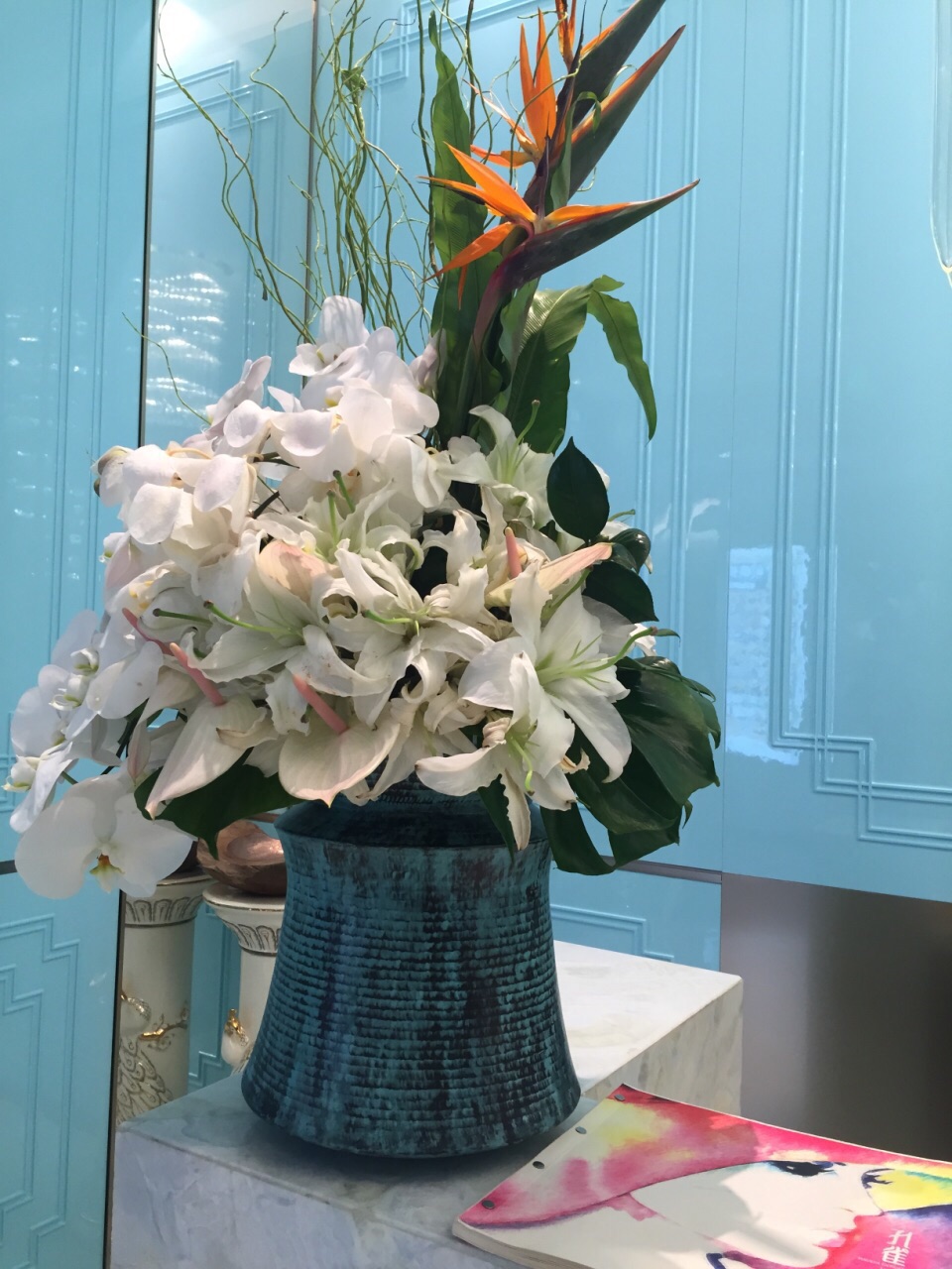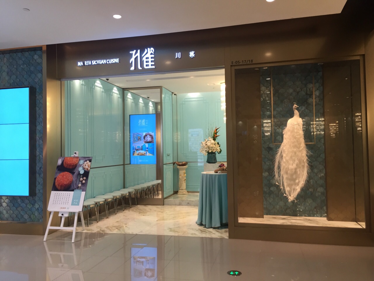 菜品做得很精致美味,连出售的月饼也很考究,用餐感觉很棒。门口有一只白色的孔雀,标志很明显孔雀川菜位于来福士东区,是一家比较高端的川菜馆。门口有一只白色的孔雀,标志很明显。入内蓝白相间的餐厅布置,让人感觉很清新,一改川菜油腻的印象。菜品做得很精致美味,连出售的月饼也很考究,用餐感觉很棒。