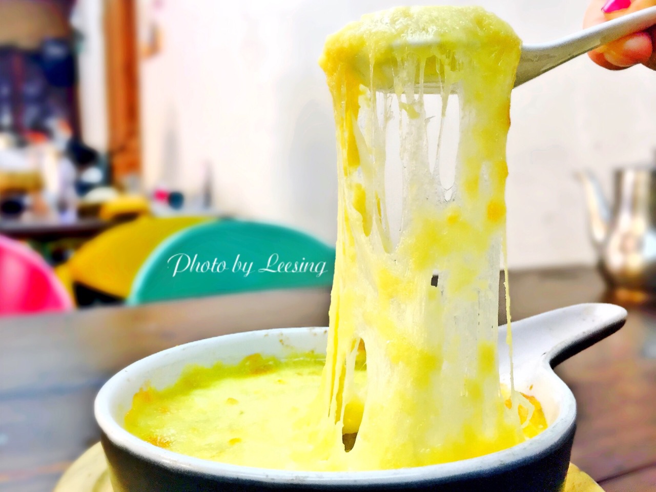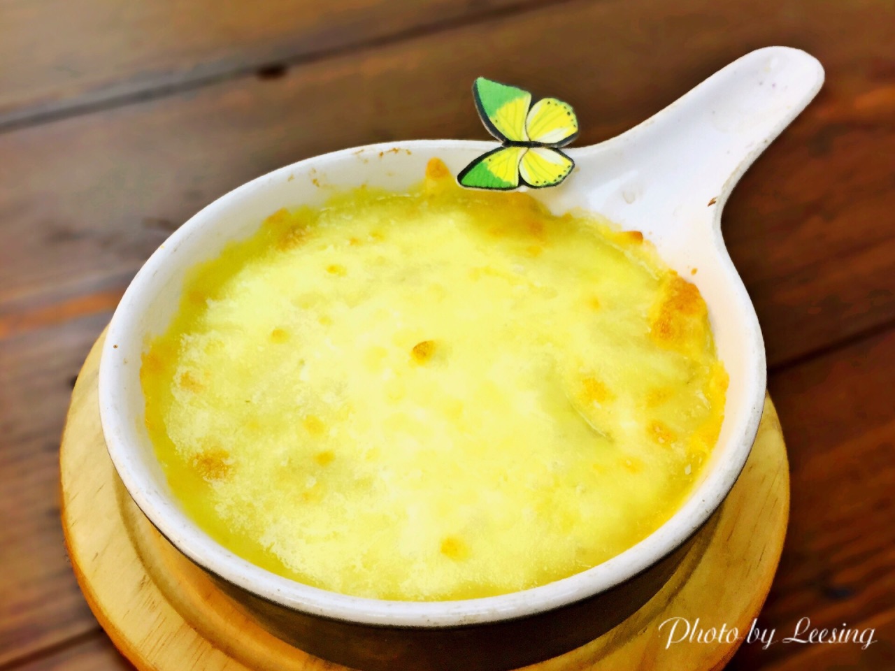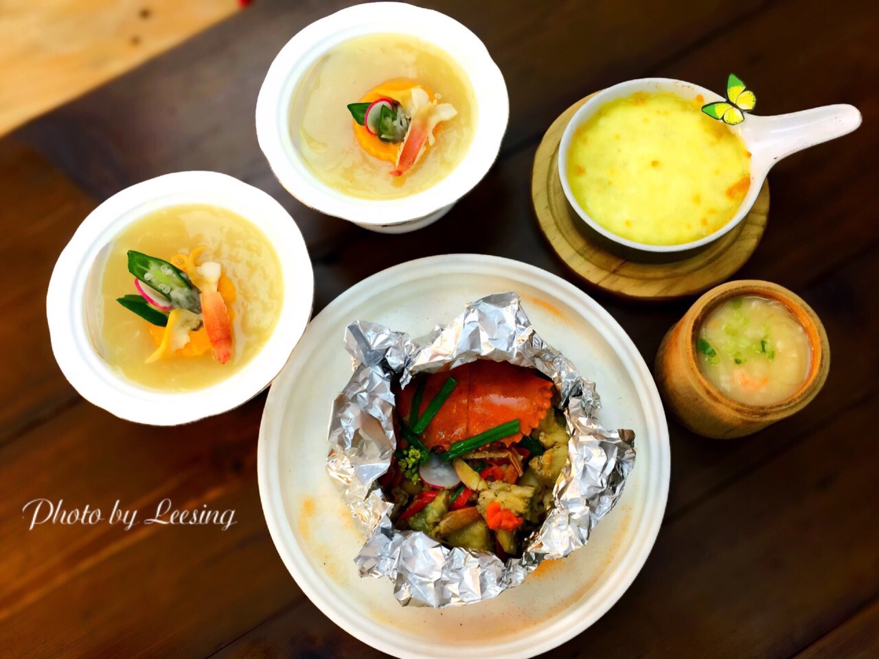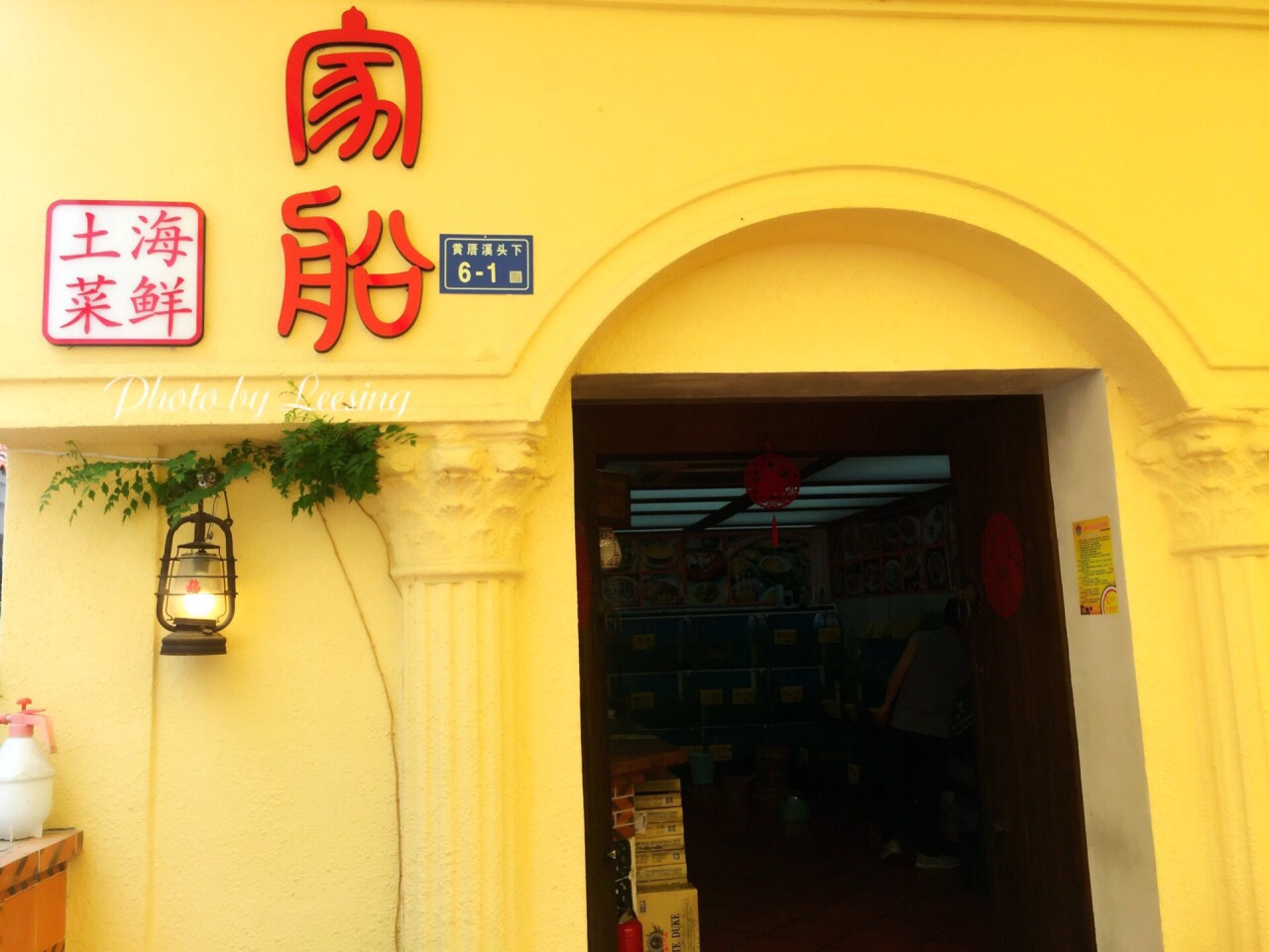 家船海鲜土菜馆位于塔头站溪头下站附近,一栋独立的小别墅餐厅,不仅有室外也有室内环境,共三层楼,一楼是前台海鲜池和小桌,而二楼三楼则是大桌及包厢,满足了不同来客量的需求,不过店内整体环境不如外在来得吸引眼球。 看了推荐菜,点了「当红鸡蟹舞」、「家传养生粥」、「金玉小象蚌」、「榴莲忘返」。 「当红鸡蟹舞」。一上桌店员就点火,火焰的诱惑,小歆是恨不得手伸着就直接抓起开吃。里面有膏蟹有鸡肉,伴随着酒的香气。 「家传养生粥」。竹筒装盛的,特别有Feel,里面加入了鱼翅蟹肉等,说是鱼翅感觉可能是粉丝?蟹肉虽然都是很碎很小,但是料还是不少,每口都能吃到。不过米煮得不够软烂,口感上不是很佳。 「金玉小象蚌」。颜值菜品,很是精致,汤头也挺不错的。就是刚上来的时候就只是温温的,虽然底下有小蜡烛加热,倒是一直也未热起来过,去过热一些就更好了。 「榴莲忘返」。好爱,底下满满全是榴莲果肉,上面铺上了芝士,汤勺一挖,芝士拉起一丝丝,入口榴莲果肉即化,香浓美味。
