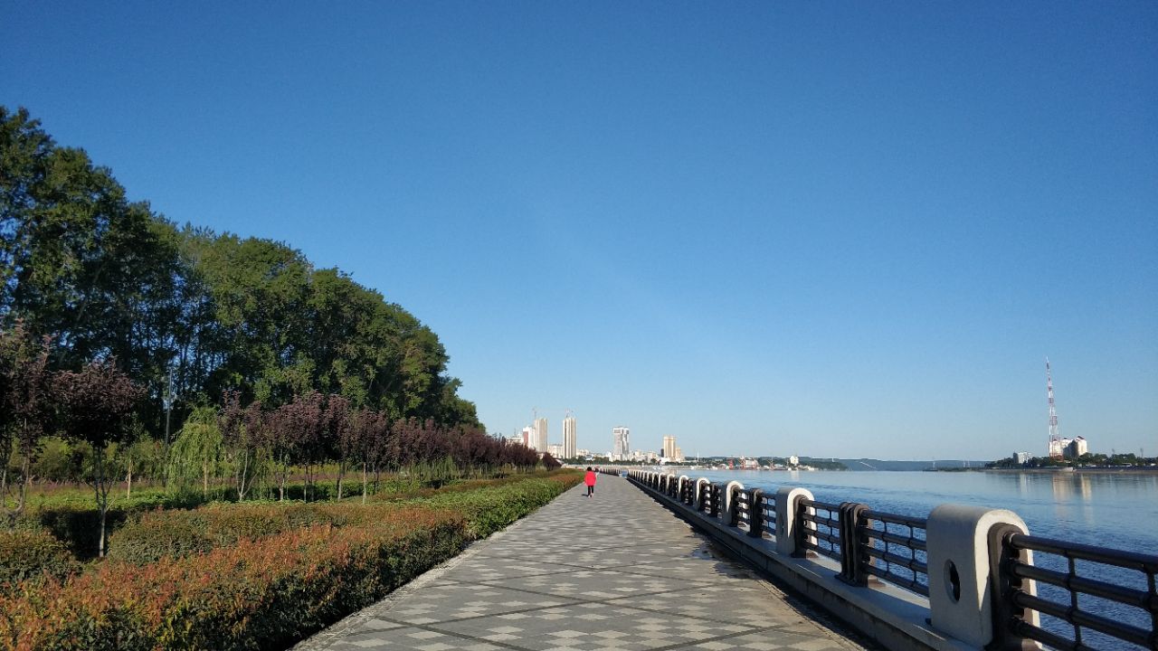 中俄边境城市黑河,与俄罗斯远东第三大城市布拉戈维申斯克隔黑龙江相望。大黑河岛是黑龙江主航道中心线中方一侧的江心岛,黑河当地人习惯性的称之为大岛,岛上因为生长着很多品种的树木和花草,便开辟了一处植物园供市民和游人观赏风景、休闲娱乐,近年来更是成为了健身主题公园,修建了栈道平整了场地,成为了人们运动健身的好去处!