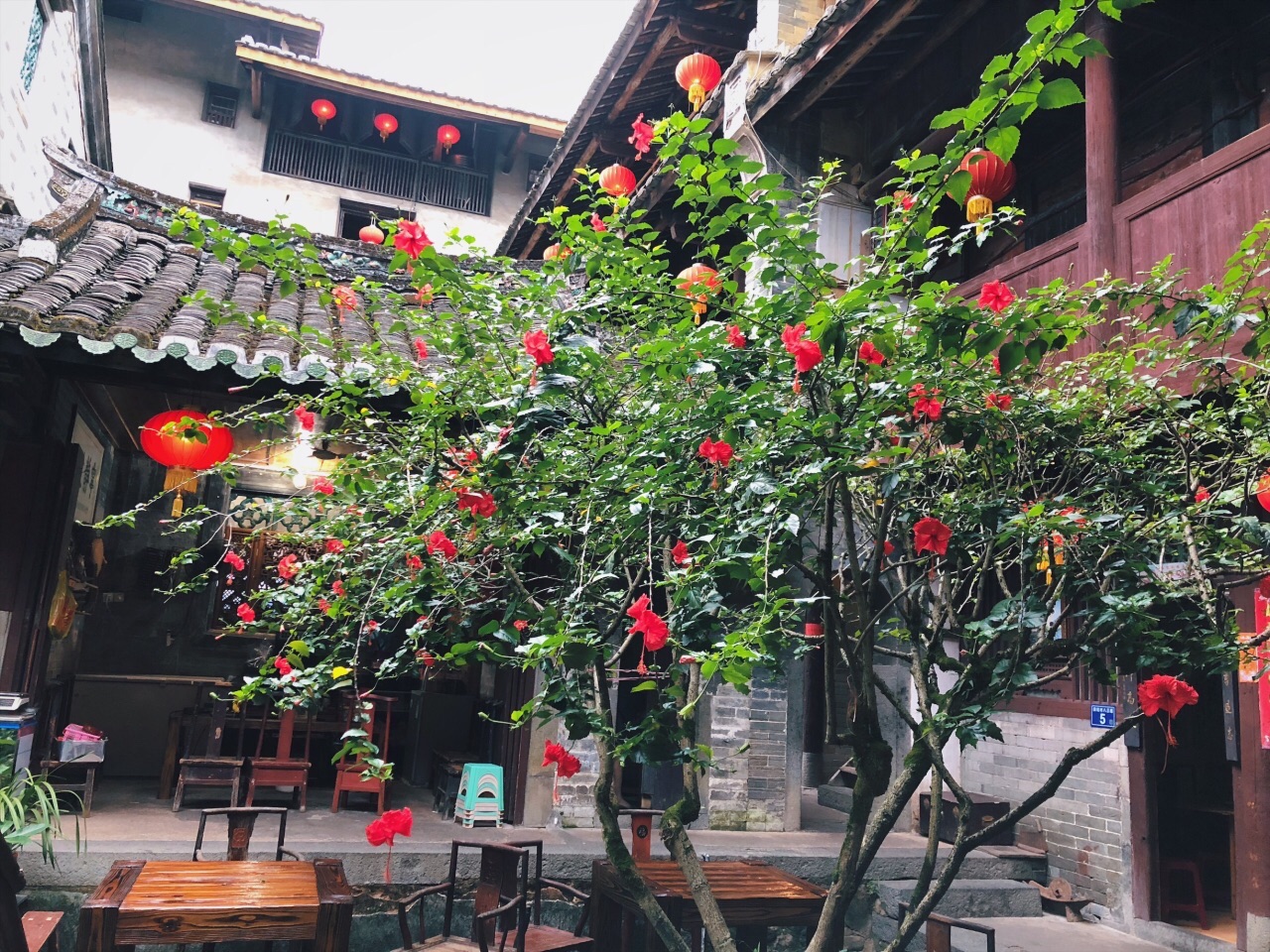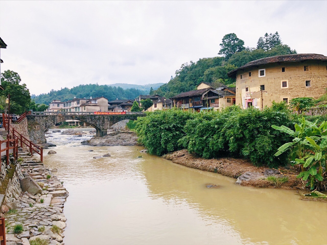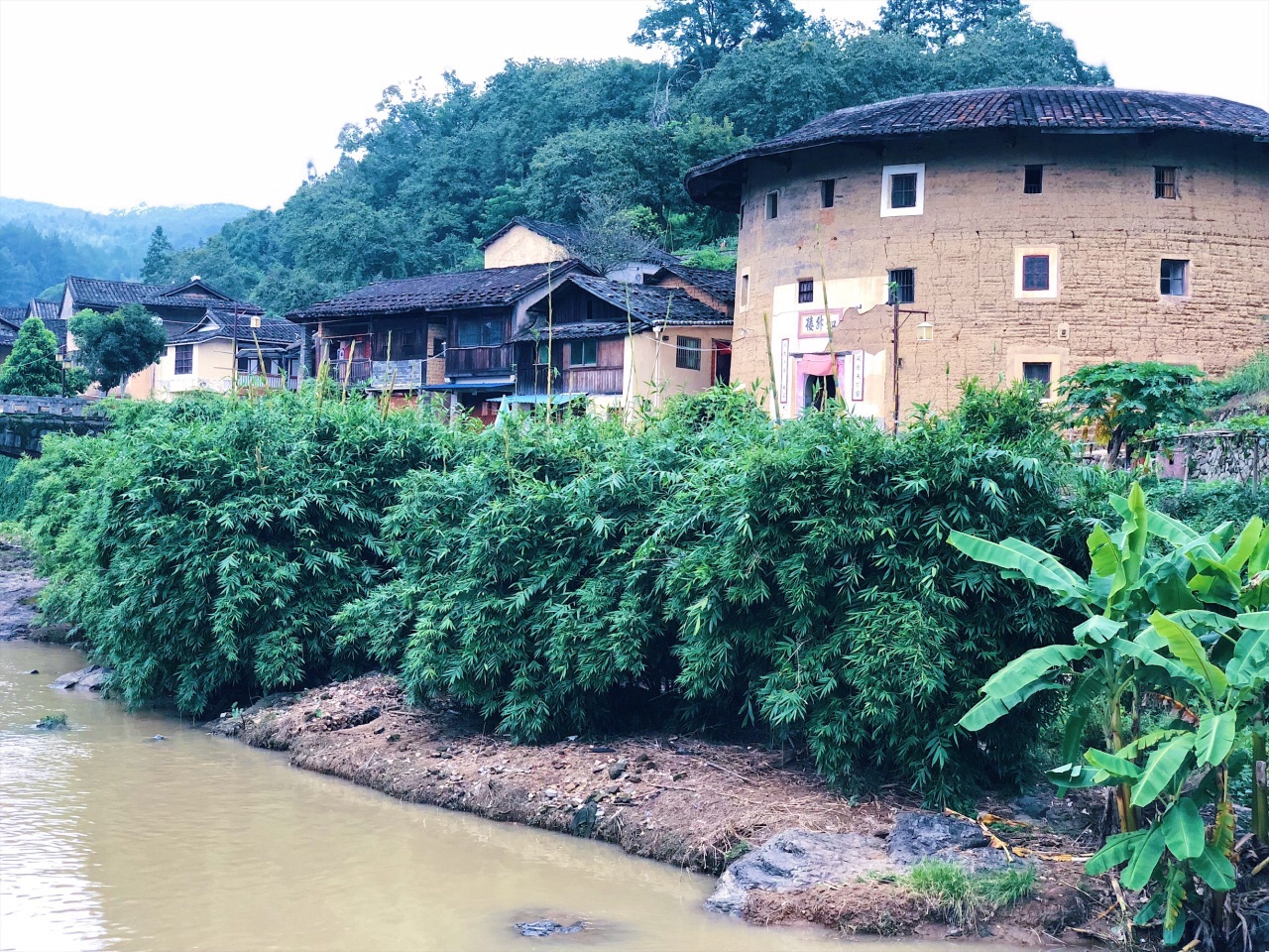 福裕楼位于湖坑镇洪坑村,是永定府第式土楼的杰出代表,三堂四落式富丽堂皇。 楼门坪和围墙用当地河卵石铺砌,做工精细巧夺天工,与自然环境浑然一体,外形像三座山,隐含楼主三兄弟“三山”之意。 屋脊飞檐翘角气宇轩昂,如同五凤腾飞气派壮观,造型独特酷似九脊歇山顶,故称为五凤楼。