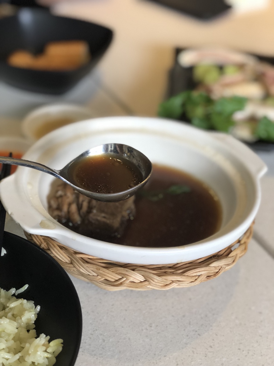 还是原来前面那条路的新加坡肉骨茶好喝~ 鸡饭也不香。 油条也和肉骨茶不搭,粉多,比较湿软