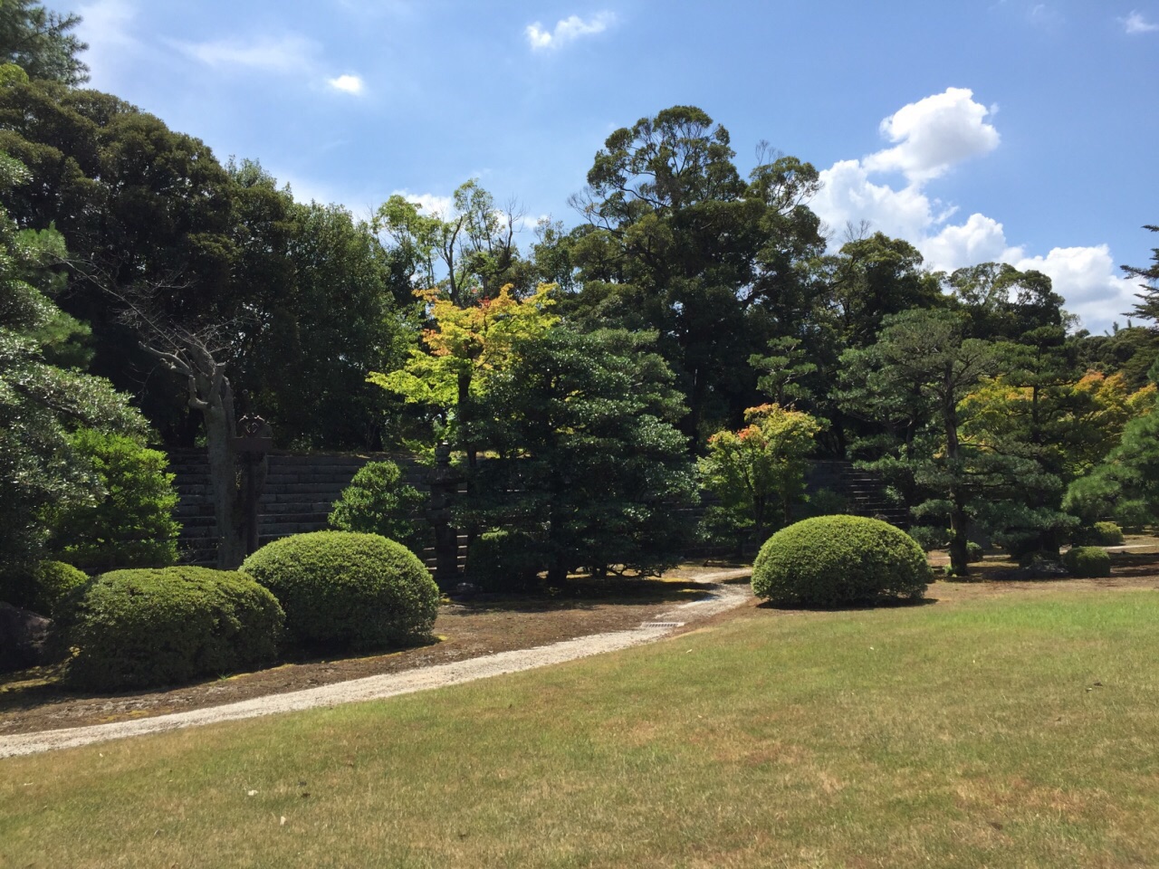 日本特色的花园非常的有特点。二之丸庭院是日本战国三雄之一的丰臣秀吉所修建的二条城的庭院花园二之丸庭院是日本战国三雄之一的丰臣秀吉所修建的二条城的庭院花园。日本特色的花园非常的有特点。逛完了二之丸就可以到里面休息。秋天有枫叶,红红一片煞是好看