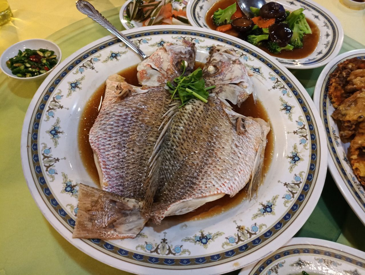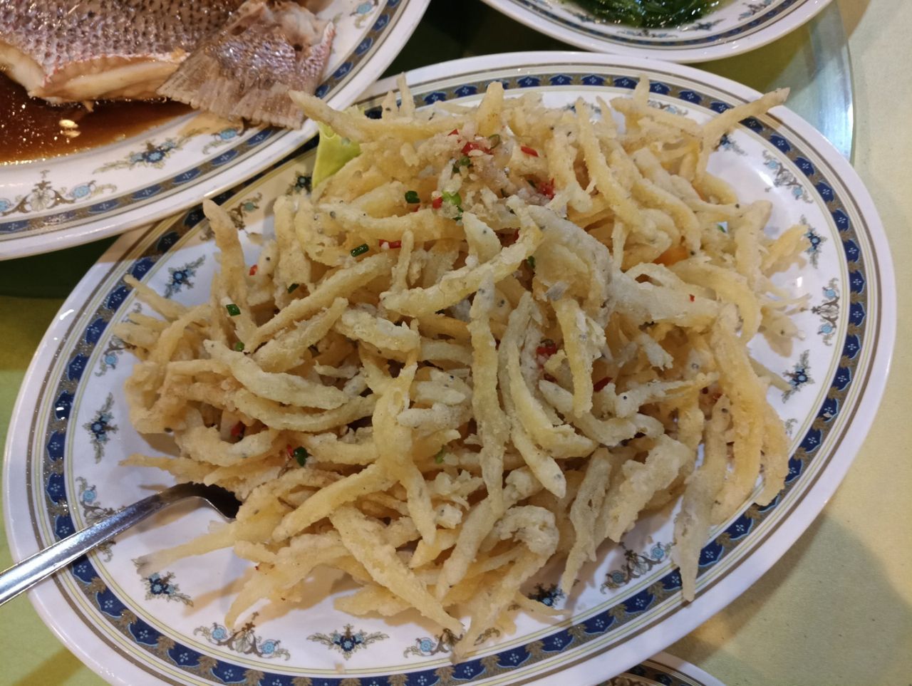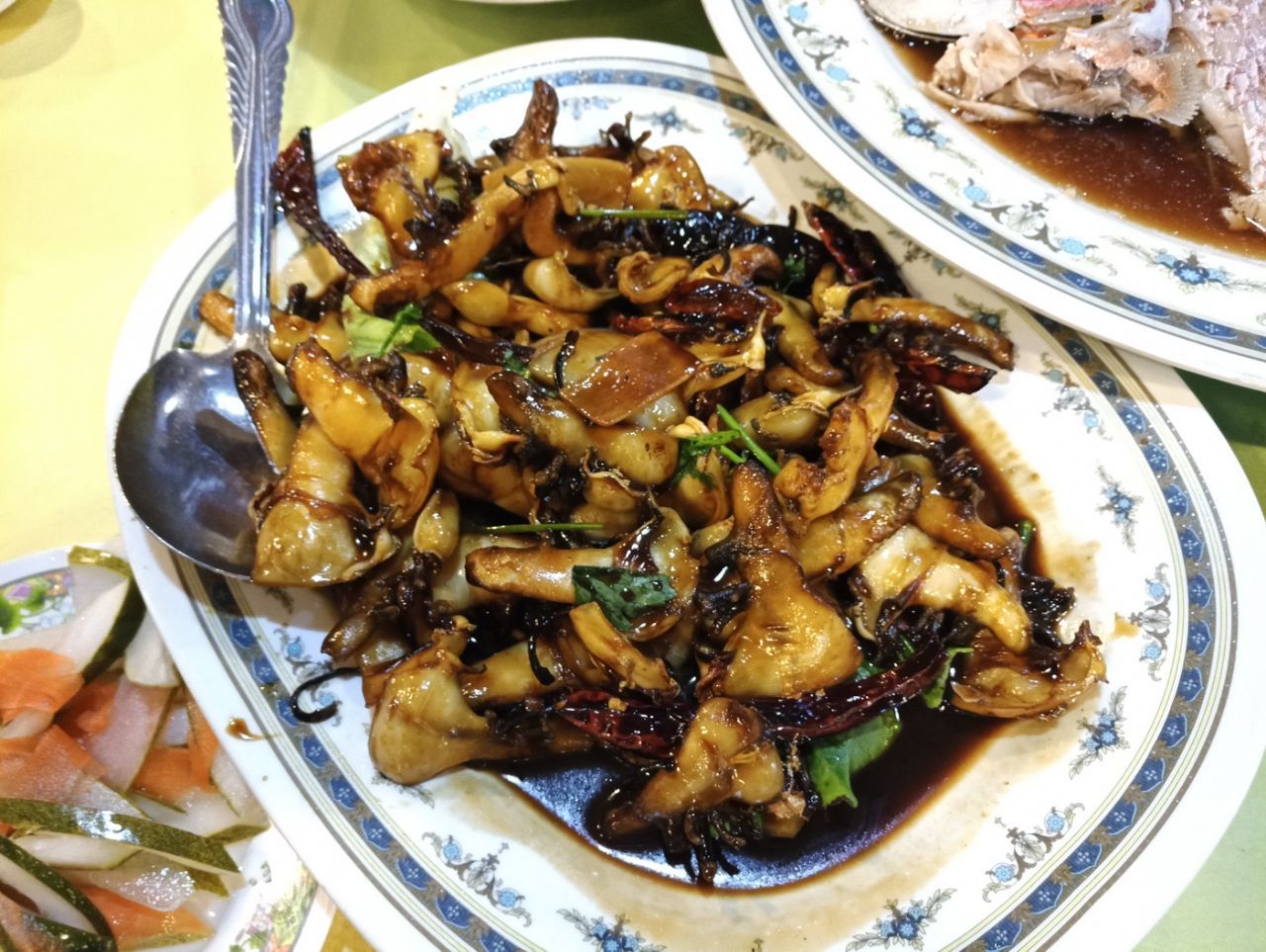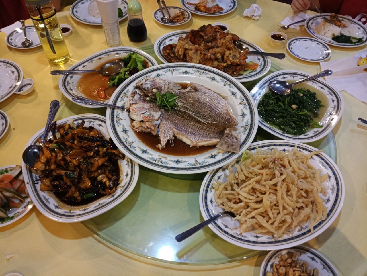 海鲜都是冰鲜的,要了一条大hong鱼,很新鲜;螃蟹是活的,蟹壳里全是蟹黄,太棒了;还有炸银鱼很酥香,炒螺肉很筋道。同行的两个小朋友不吃海鲜,点了炸鸡薯条,味道也很赞。有位祖籍海南的大爷非常热情,全程都是他们接待的我们,给我们推荐好吃的做法,赞一个!一大桌子,5大4小花了307马币,很实惠。