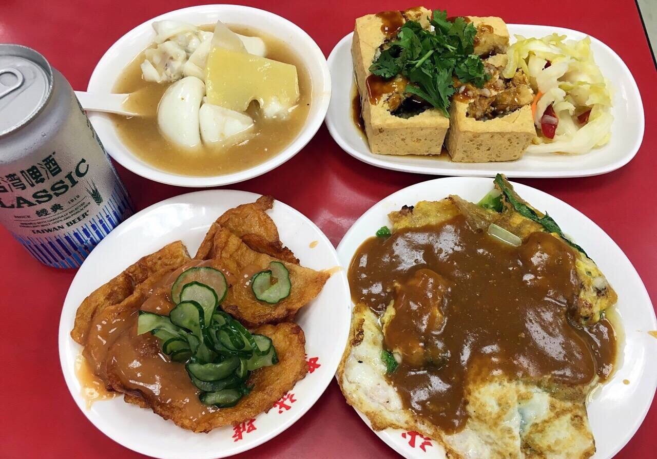 忠诚号蚵仔煎是当地朋友推荐的,据说稍晚些会排队吃,蚵仔煎是番薯粉浆包裹蚵仔、鸡蛋、葱、香菜等食材所煎成的饼状物。蚵仔也叫牡蛎,我们这边叫“蚝”,闽南潮汕及台湾一带称之为“蚵仔”。据说也是过去没粮食吃的代食品,让我想起有张图,那些岁月,穷苦的上海人靠吃阳澄湖大闸蟹艰难度日!呵呵!这个蚵仔煎还是口感鲜美、滑润的,体验一杯台湾啤酒还不错!推荐!