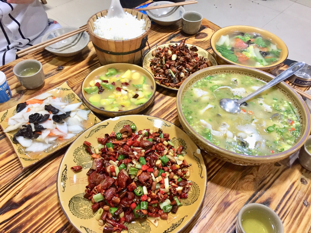 在点评网上订的团购餐,满满一桌才138元,只能用物美价廉来形容,5个人都吃不完,也许是几天大吃大喝,战斗力有点减弱。 食材很新鲜,鱼都是看着拿进去现杀的,鱼略为淡了一些,而且鱼的刺特别多,一不小心就卡喉咙了。 辣子鸡炸得干了些,鸡皮很脆。 其他的瓜菜口感都很新鲜。 门店在小路里,路上人流不大,需要找一下才能找到店铺。 店员服务是超级好的。