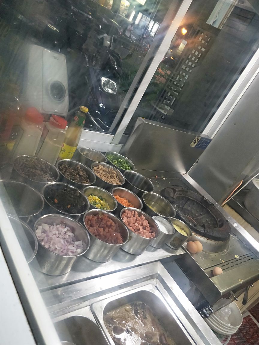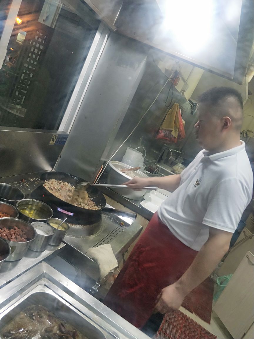 曾经在夫子庙网红的路边摊☞金口福炒饭,前一段听朋友说在夫子庙有固定的店面了,想着想着就过来了。 靠近白鹭宾馆这边,的大石坝街上,晚上6点半开始营业,其实6点钟就有食客等候排队了,门店不算大,收拾的挺整洁,有消毒碗筷,操作间里有卤好的卤味,各种炒饭的小料配菜有10来种,炒饭品种大概有20种,还有卤味,汤品。 饭是炒饭哥亲自炒制的,同一品种的炒饭一锅可以炒好几份出来。点的酸菜肥肠炒饭和青椒肚片炒饭,排队+等待40分钟,吃饭15分钟,一顿饭耗时近1小时。 酸菜肥肠炒饭:23元/份,米饭粒粒分明,火候把控的好,肥肠给的也多,配菜丰富,加了卤汤的炒饭味道还是不错哒,吃完略略有点油,偶尔吃一次还是可以的。 老板娘记性很好,点的单没有打印单,全凭脑子记
