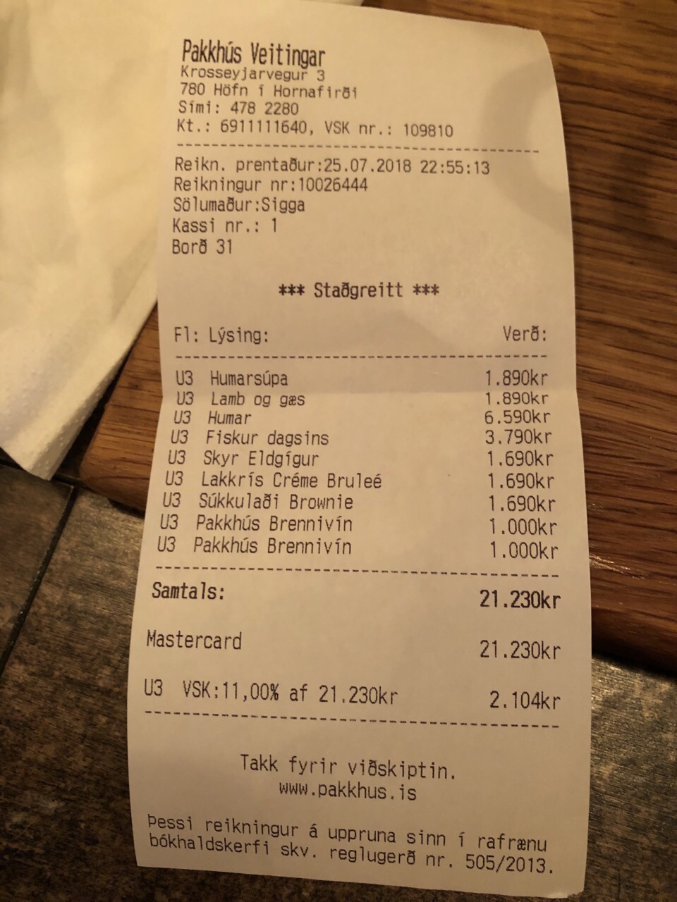 网友2018-09-07龙虾汤和龙虾都恰到时候、鲜甜可口,他家配上的面包也不错,松软弹牙赫本是冰岛东南部地区第二大渔村,以吃小龙虾为著名。找了这家餐厅小龙虾是他的拿手好菜。 龙虾汤和龙虾都恰到时候、鲜甜可口,他家配上的面包也不错,松软弹牙。