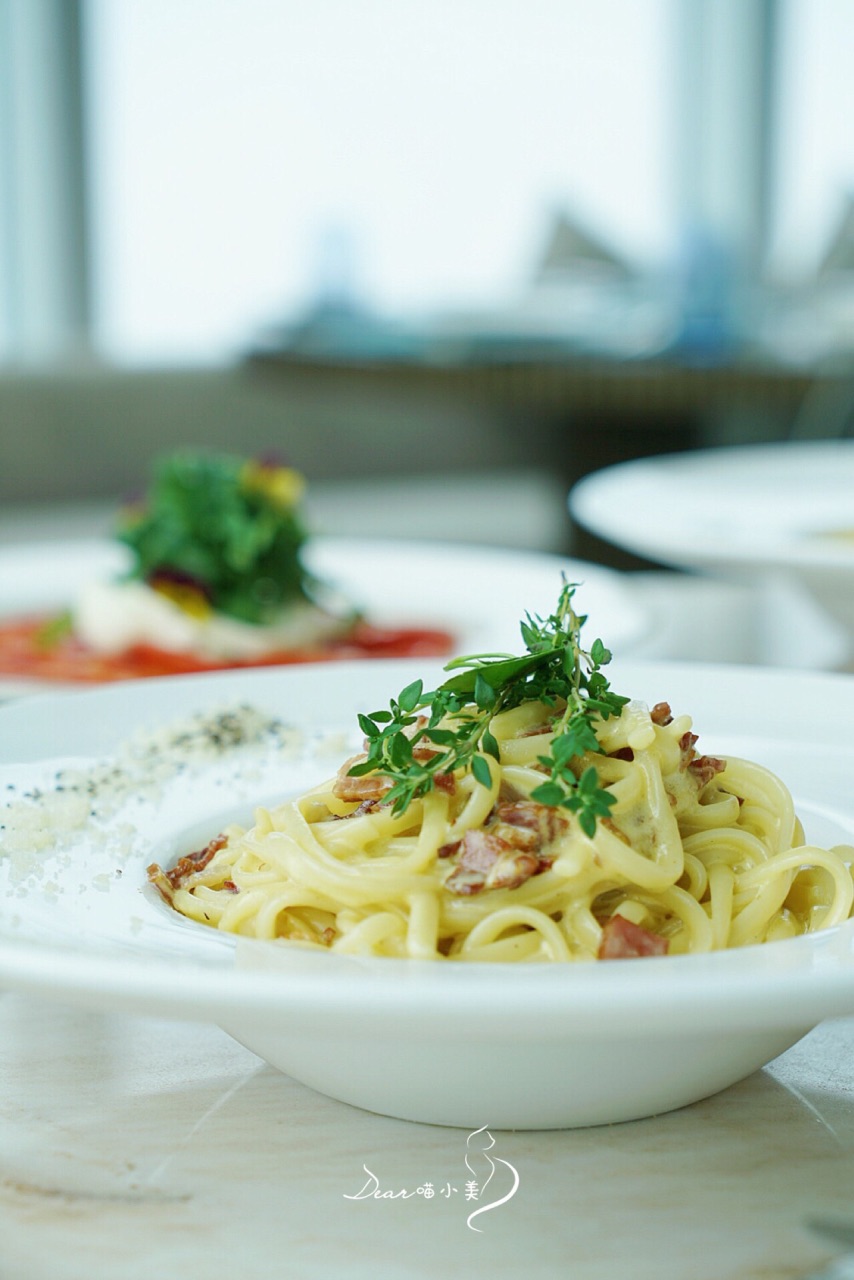 周末的中午,自然是,睡到自然醒,然后打扮美美哒出门吃个内外兼修的brunch 今天吃康莱德酒店54层海岸餐厅新出的brunch! 环境超好,落地玻璃大海景无敌啦你懂的,可惜天气有些阴阴的不然湛蓝的晴天一定会拍到昏厥哈哈哈。 挺钟意的熟肉拼盘,搭配了优质的薄切火腿、甜香的鹅肝批、醇厚的萨拉米肠以及酸面包、卡拉马塔芝士和蜜瓜好多种才148~ 很令人有幸福感的帕尼尼三文治,搭配煎蛋和帕尔马火腿配薯条,才98~帕尼尼挺扎实很有嚼劲,鲜甜紧致的帕尔马火腿也很讨喜! 一直超爱的班迪尼克蛋,看到就欲罢不能啦~搭配英式马芬荷兰汁菠菜黑松露,爱不完~ 还有超美的甜品,如果不是怕拍太久影响口感,真的会拍上半小时hhh~ 据说还有中式的牛肉面,下次再来吃!美食美景总是让人超级愉悦,完美周末开始咯!biubiubiu~~~