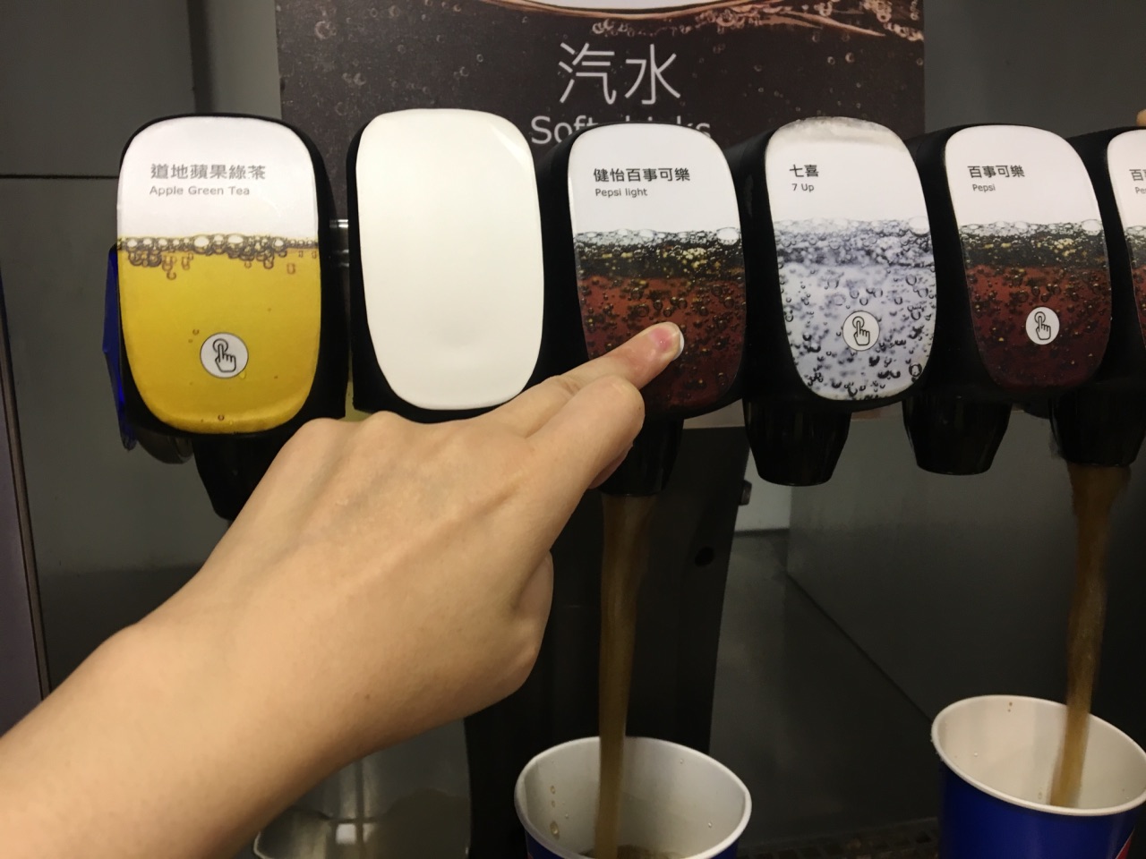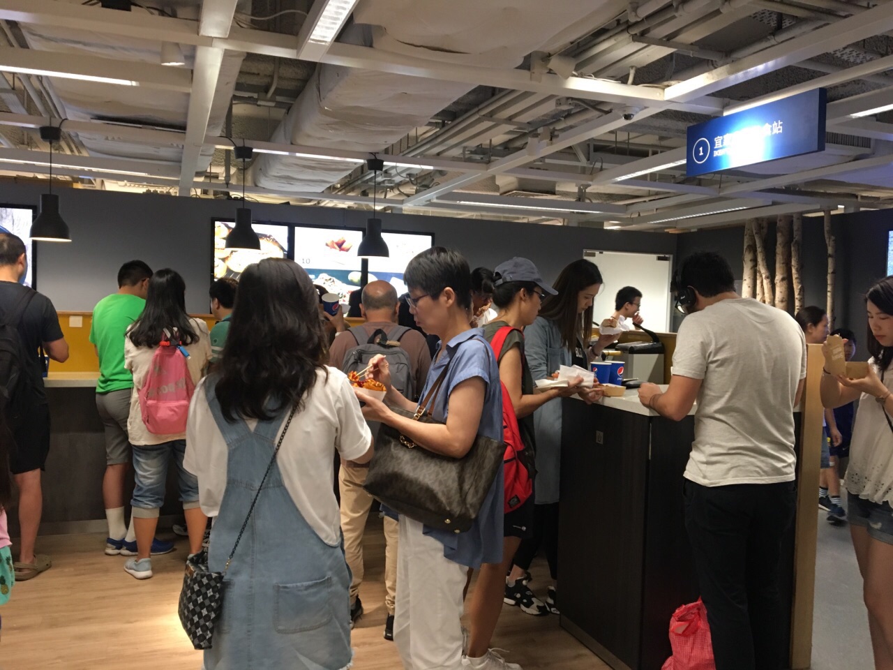 香港宜家内的餐厅可不像大陆的宜家餐厅那样,是中老年人的相亲之角,一坐就一整天聊个不停的。香港宜家的餐厅是没有座位的,全部都只能站着吃。站着吃的位置就在宜家卖场的入口,同时也是出口,所以来来往往的人会比较多,买好饮料要很小心,别泼到别人的身上了。环境不咋的,不过倒是挺便宜,热狗+汽水10蚊。10蚊,这个价格在香港连一串麻辣烫都吃不到吧。