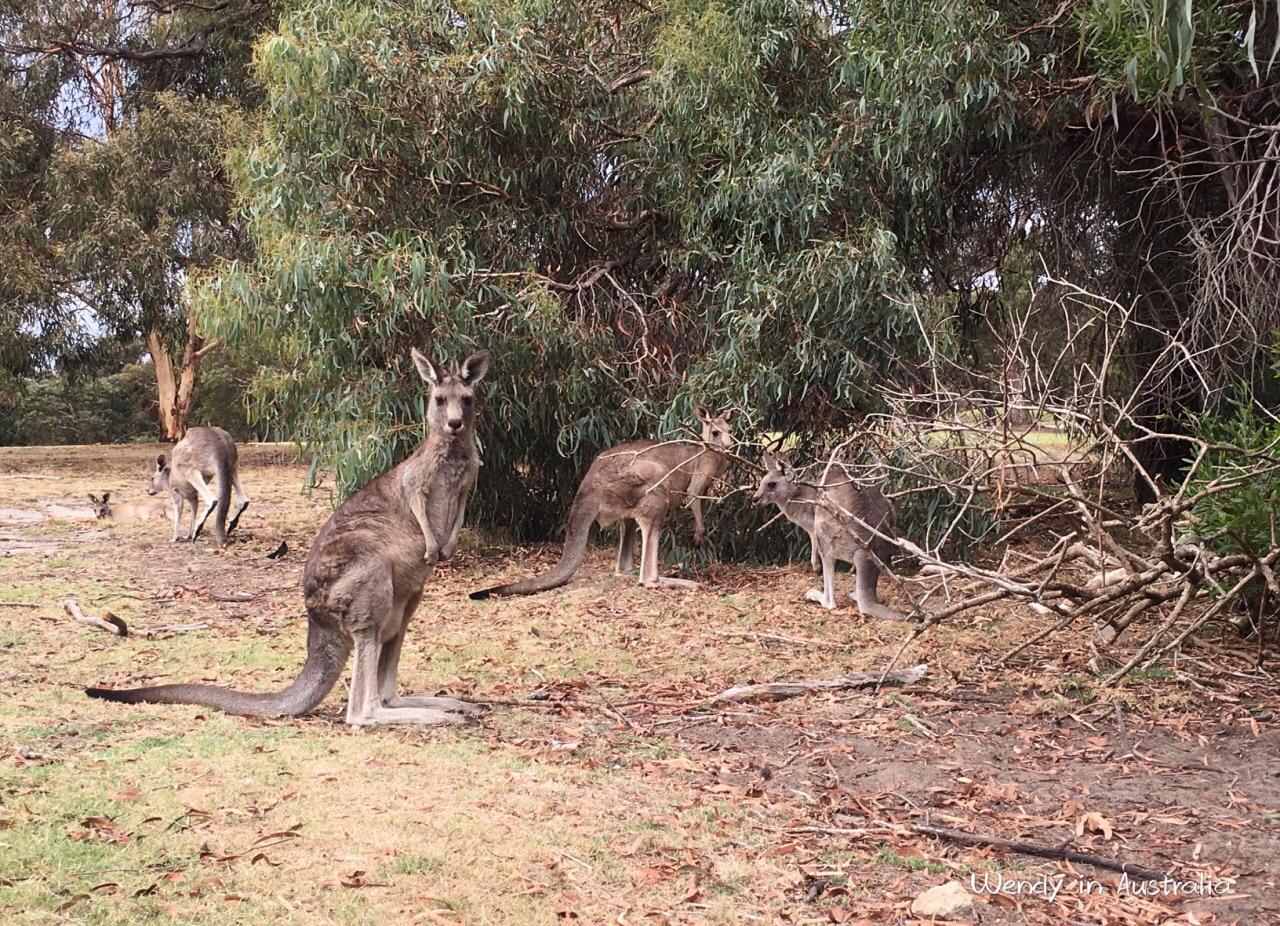 去安吉尔西就是冲着高尔夫俱乐部的袋鼠群,据说以前是免费景点,现在收取10刀的门票费用,不过这钱收的不冤。可以坐电瓶车游览高尔夫俱乐部,司机兼职导游,会给你介绍俱乐部里的鸟类和袋鼠。遇到拍摄点也会停下来,让游客拍照。俱乐部风景一般,草坪有点秃,袋鼠不如想象中那么大,都有点懒洋洋的,有几只挺有警觉心的,一直盯着我们看。