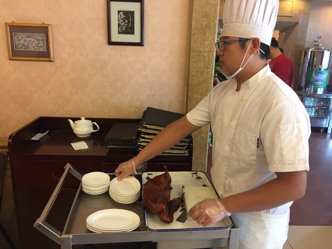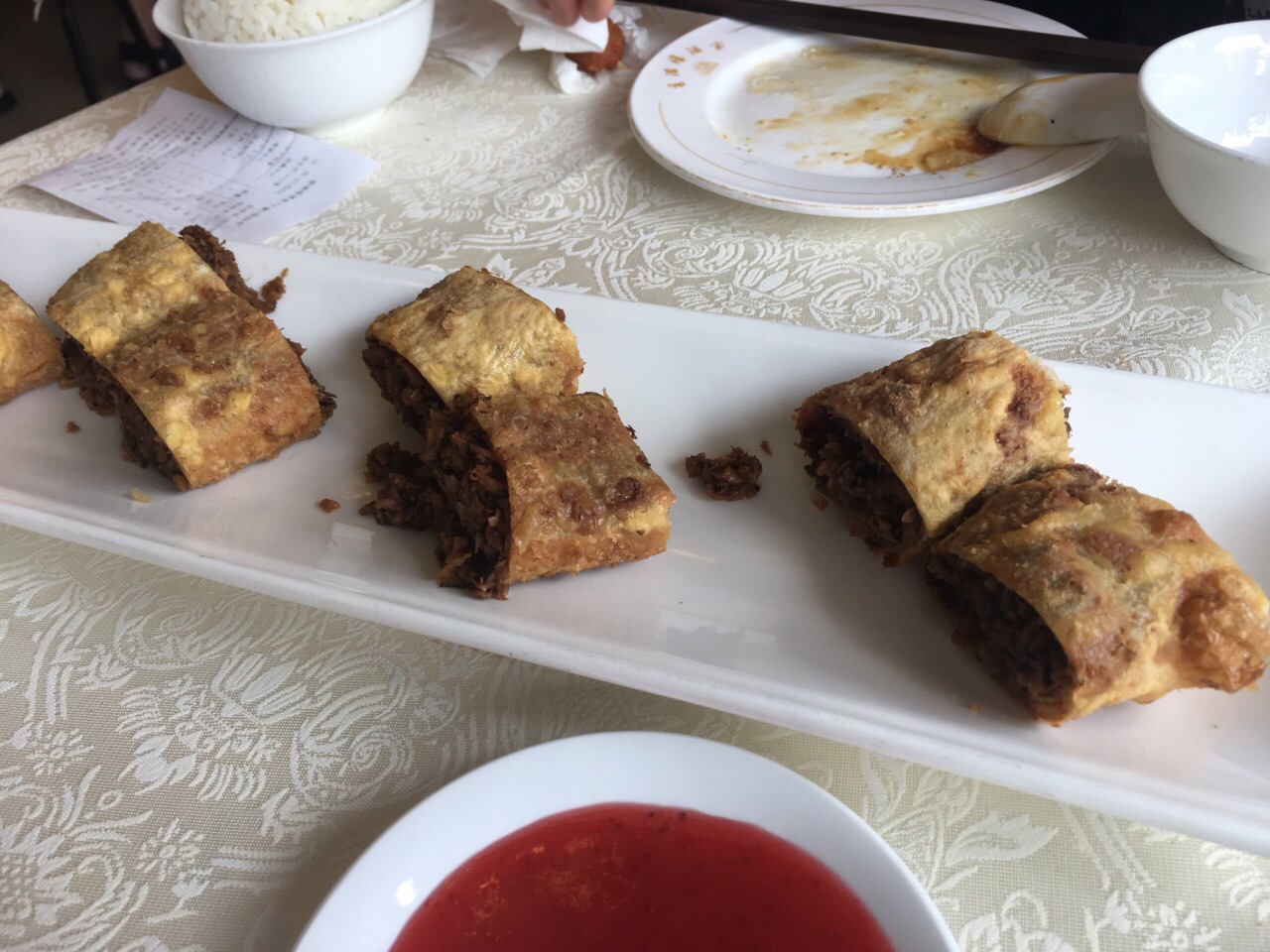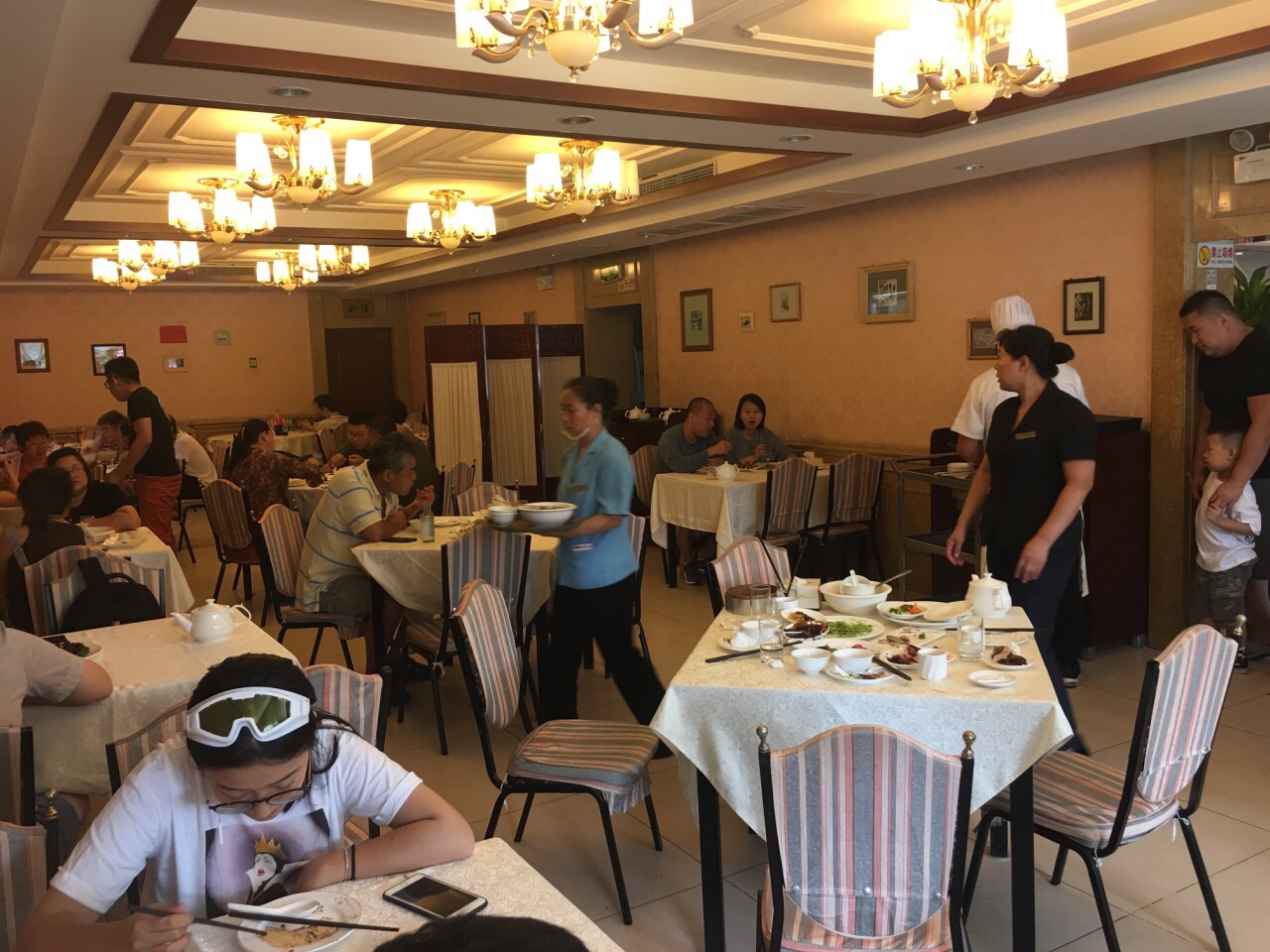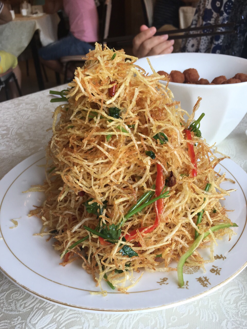 吃了多少年的老馆子了,味道还是一如既往地赞,基本都是当地人才来的老店。 每次来有几个招牌菜必点: 糟溜鱼片:感觉分量比以前小了,但汁儿的味道还是不错的,甜度适中可口。而且鱼片基本没有鱼刺,只有几根大刺。 干炸丸子:外焦里嫩,酥酥脆脆,一口一个,根据口味可选两种蘸料。刚端上来热乎乎的好吃极了。 芥末鸭掌:夏天开胃凉菜,芥末汁应该也是自己调制的,感觉没有以前那么辣了,不过菜量似乎也变小了。 香辣土豆丝:又一道从小吃到大的菜品,不变的是味道,变的是价格...里面的辣椒丝稍有点辣,不吃辣的同学记得少辣。 南瓜尖:第一次吃这个菜,或者说是第一次吃南瓜尖,超大一盘,下面是肉末粉丝,肉吃多了换个蔬菜尝尝也不错。 鸭方:豆皮包裹着鸭肉丁,菜丁等,蘸着果酱吃,感觉小朋友应该会很喜欢这道菜。只是这道菜烧制时间较长,快吃完了才端上来。 另外的南煎丸子,素茄子,烤鸭也是这里的招牌菜。特别是烤鸭,除了传统烤鸭,鸭子的其他部位,鸭心鸭肝鸭掌等等全部可以单独入菜,真是一鸭多吃。 不点烤鸭的话,价格也不是很贵,四个人点了6-7个菜也才300多,而且还打包了好多回去。 还是那句话,吃了多少年的老店,味道还是一如既往地赞。嗯,看看饭点时的等位就知道这里多火了!