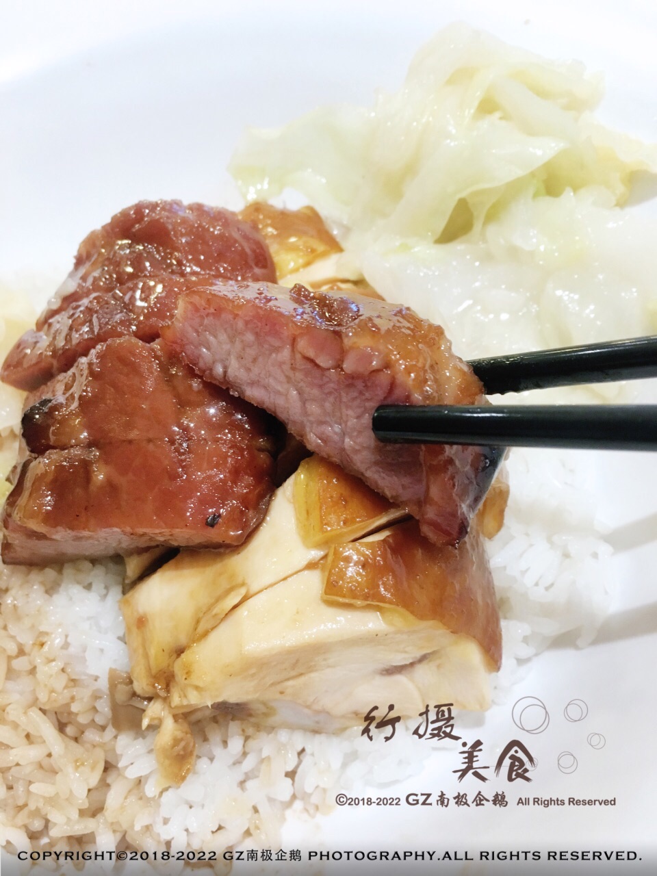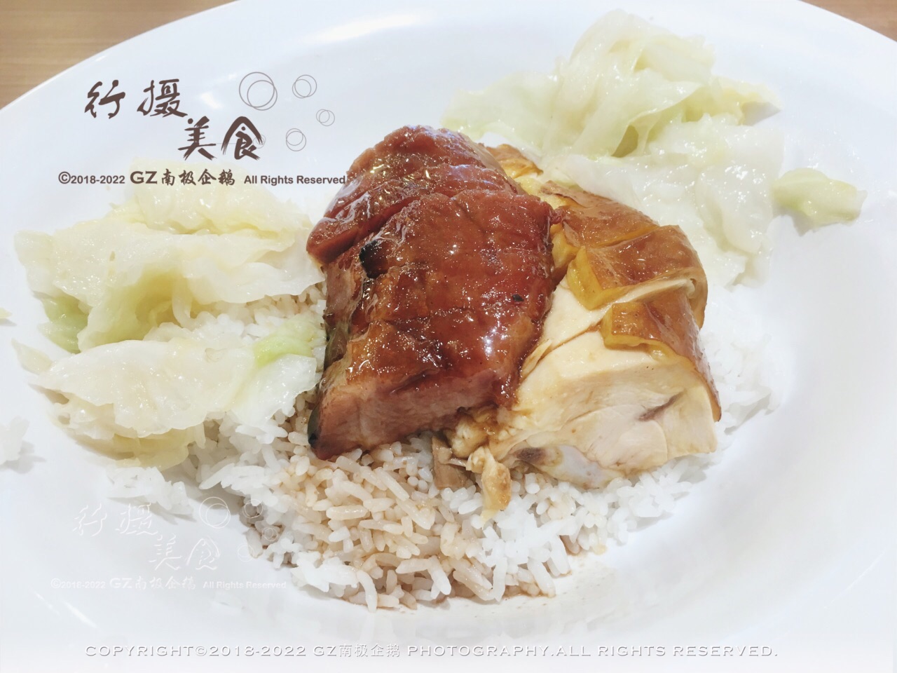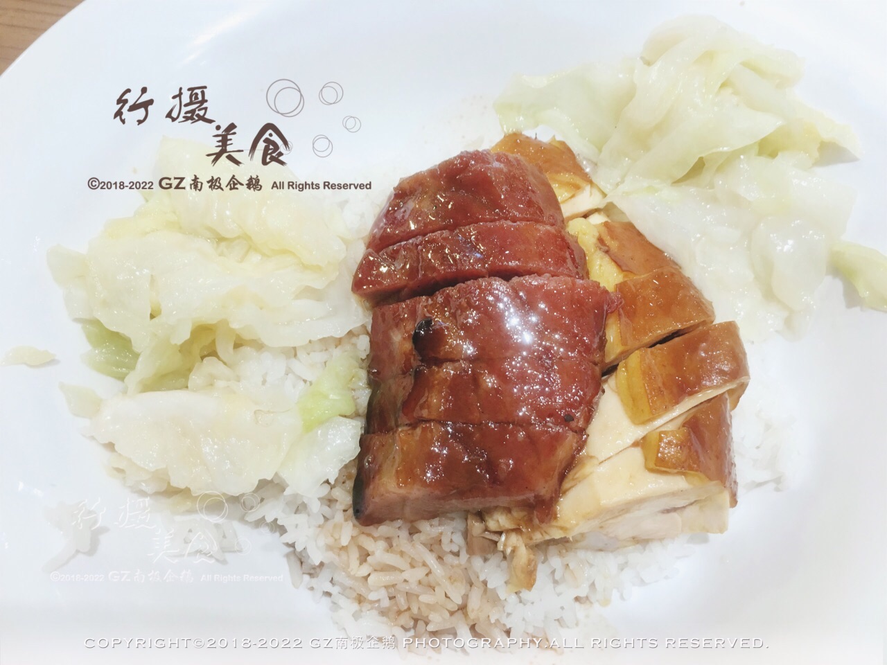 不知会不会不够熟,结果担心是多余的,鸡胸肉百分百全熟,有点过火了,肉质比较老,也不够入味,还好...是日午餐,大家乐叉烧拼油鸡饭,豉油鸡这次配的是鸡胸肉部分,开始担心鸡胸肉很厚,不知会不会不够熟,结果担心是多余的,鸡胸肉百分百全熟,有点过火了,肉质比较老,也不够入味,还好有一小碟姜葱汁搭救。