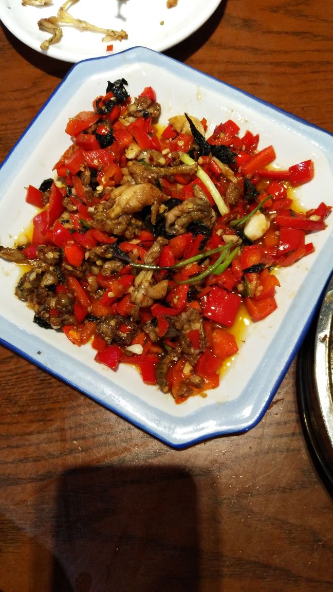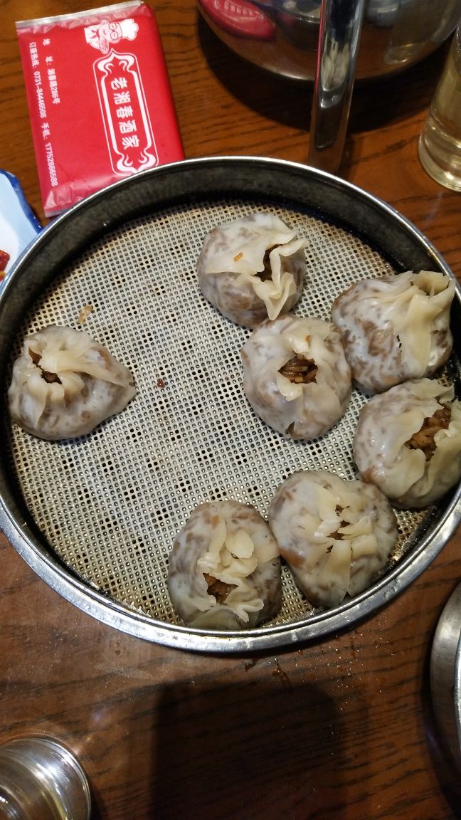 我们一家三人刚从外省回来,十分想念家乡味道,于是也没回家,先奔这儿来了!门口等位子的人不少,仍旧很是热闹。但咱们运气不错,刚等五分钟就等到一个三人的位子。鳝鱼、田鸡各来一份。味道自然没的说,香辣爽口,下饭下酒的绝配,地道长沙味!蔬菜只有芽白和豆芽两种选择,我们点的炒豆芽,味道同样很好!可是今天的烧卖做得失水准,又干又硬,里面还不见油渣子。最后买单价格156元,稍有些贵,但吃得很饱!