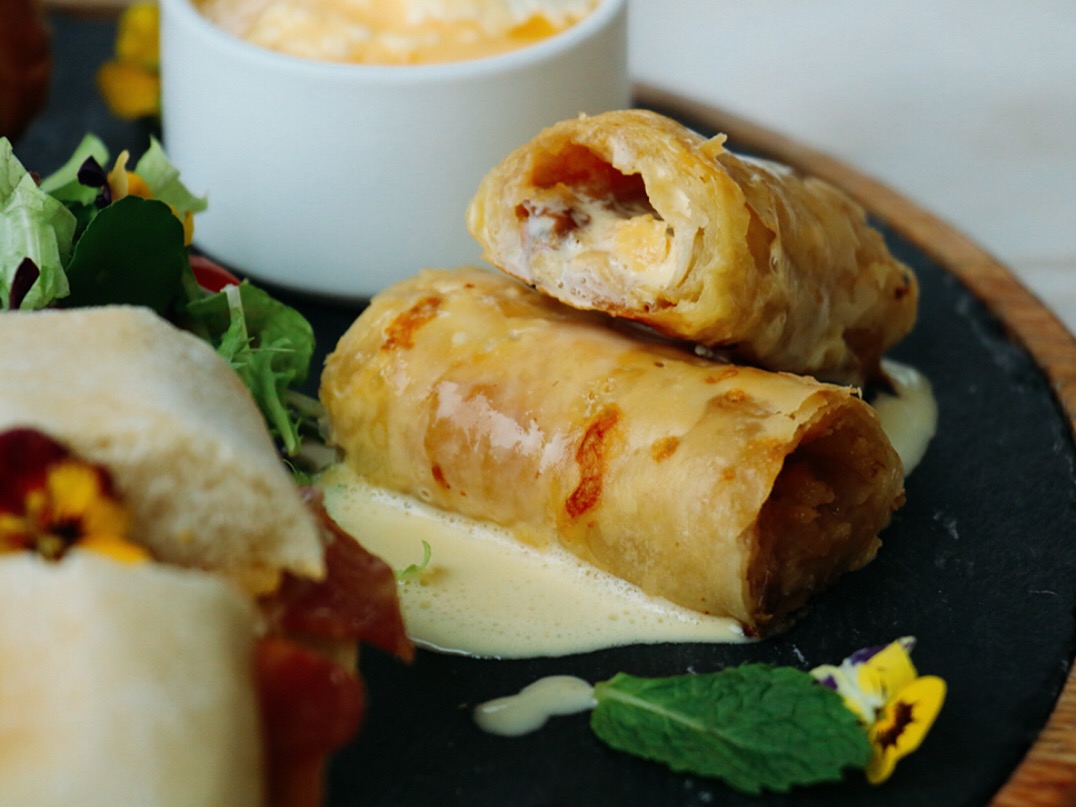 -我jio得我除了烟花魔咒以外 还有一个只要上高楼就会起大雾的魔咒 康莱德酒店的海岸酒廊新推出了周末brunch 就在54层,朋友前两天的图片就拉我去看风景 本可以俯瞰美美的鼓浪屿,但是因为天气没能看到 虽然有风景优势,价格却很良心性价比挺高的 -1⃣️熟肉拼盘 搭配了火腿,鹅肝,萨拉米肠卡拉玛塔芝士 还有蜜瓜,味道特别鲜甜,口感脆脆的 用火腿裹上蜜瓜一起吃味道超级棒 鹅肝也很细腻,份量也蛮多的 这个套餐才148rmb有点划算 -2⃣️意大利蛋饼 蛋液里加入了牛油果,洋葱,马苏里拉芝士一起煎 口感挺顺滑的,还能吃到洋葱的颗粒感 刚上来的时候蛋饼还热乎乎的,蛋香味满满 -3⃣️帕尼尼三明治 面包体外边还挺脆的,个人比较喜欢这种脆的口感 就是里边有一点点湿啦,夹了鸡蛋火腿咸香味刚好 -4⃣️热苹果卷 加了炼乳,葡萄干,肉桂还有苹果粒 口感有点像甩手饼的感觉趁热吃外表还脆脆的 -对啦,起泡酒也很好喝 粉红色看起来好少女