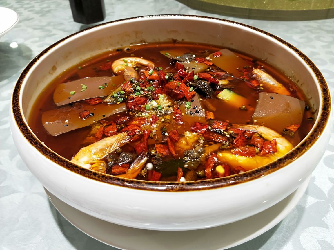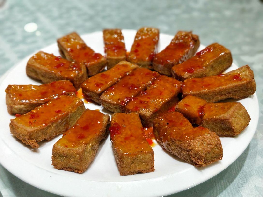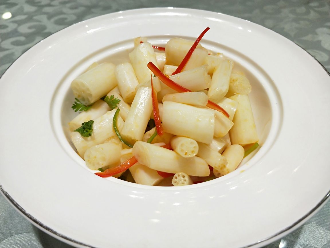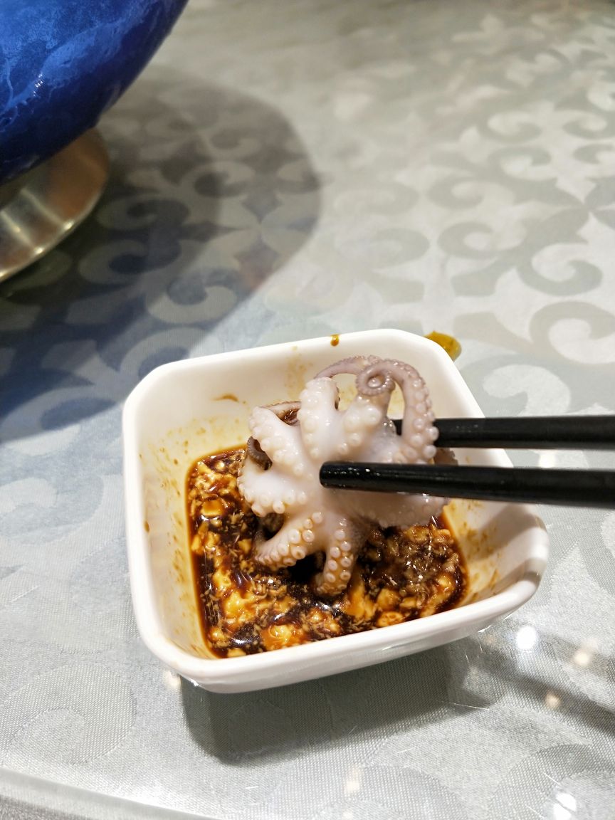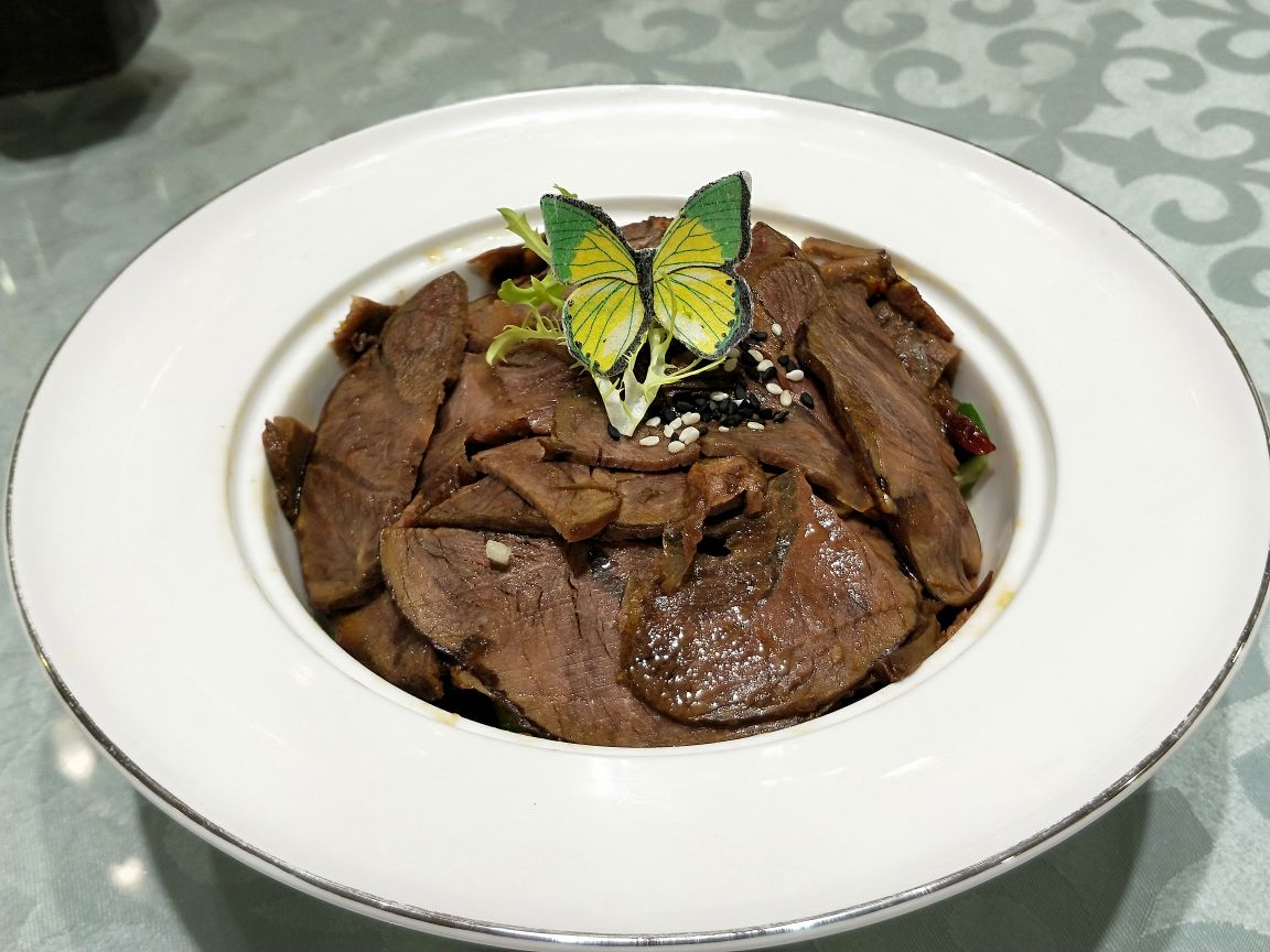 有朋自远方来,不亦乐乎…南京必游的景点之☞中山风景区一圈逛下来还真是有点累,吃饭也不想走太远,琵琶湖附近选的这家:悦涧餐厅,一排独栋,通透的玻璃窗可以观景~运气不错,订到了包间,包间大气宽敞有档次。 餐厅主打粤菜,看了菜单也兼有川菜菜品。菜品摆盘精致好看。 凉拌牛腱:菜品摆盘上的"蝴蝶灵动",牛筋腱肉片软而不烂,黑白芝麻增香。 藕断丝连:酸辣口的藕带,脆脆的清口开胃。 金蒜一口牛:大颗的牛肉粒一大口可以刚刚好,嫩香过瘾,蒜片杏鲍菇是炸过的,这道菜要趁热吃口感一级棒。 冰镇爽口八爪鱼:是某人的最爱,八爪鱼处理的很干净,吃时蘸上特调料汁,冰镇过八爪鱼尤其有嚼劲。 脆皮烤鸡,鱼头煲都是朋友喜欢的口味。 凉瓜排骨汤:吃完大菜喝一碗是极好的,微微苦的就是这个味儿。