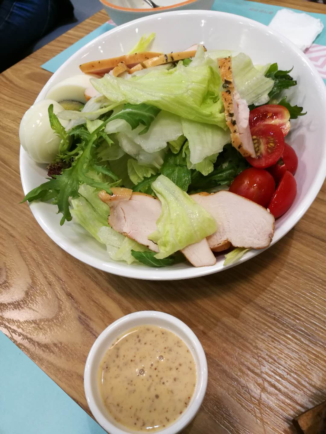 泡菜5元,色泽艳丽,看着就好有食欲,辣酱放的很多,泡菜鲜爽脆辣,很过瘾泡菜5元,色泽艳丽,看着就好有食欲,辣酱放的很多,泡菜鲜爽脆辣,很过瘾。 蔬菜色拉,32元,略贵,主要是鸭胸肉有好几片,生菜小番茄等清爽清新,搭配了酸甜的沙拉酱。