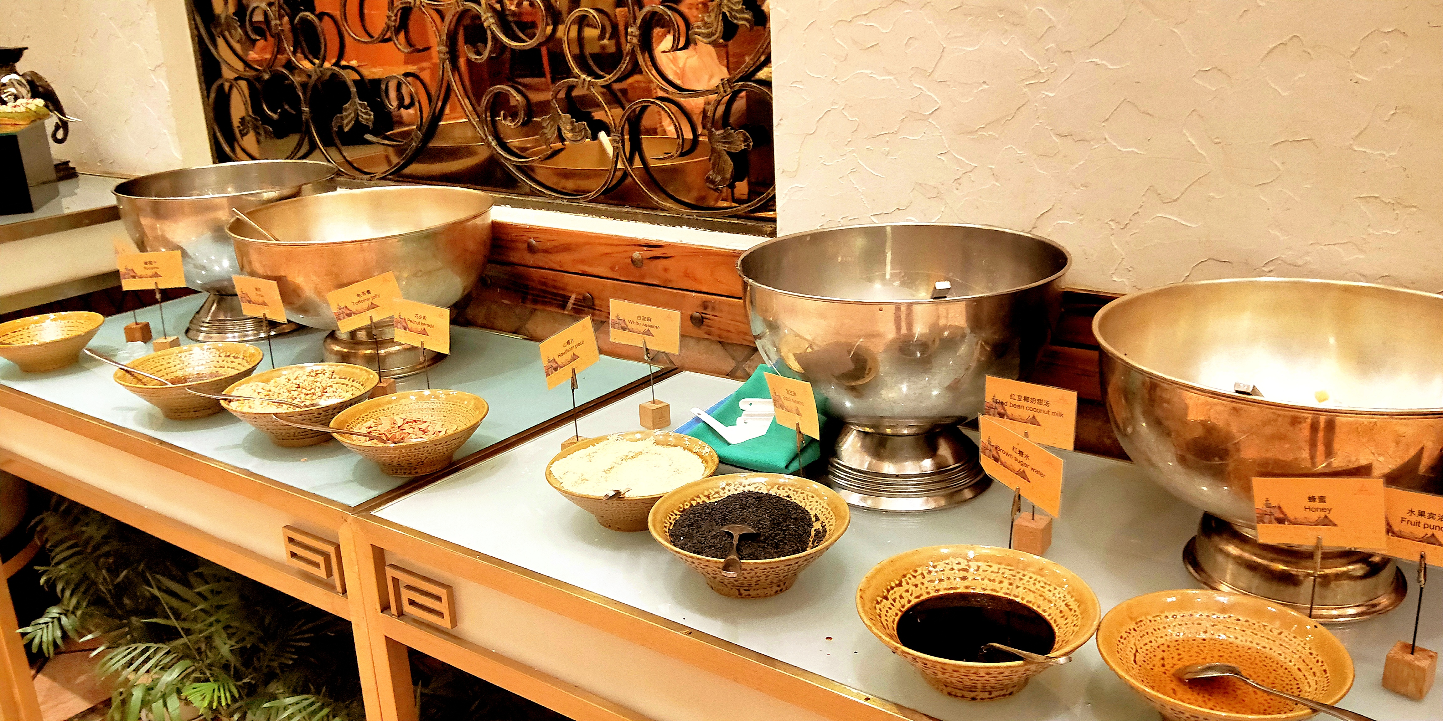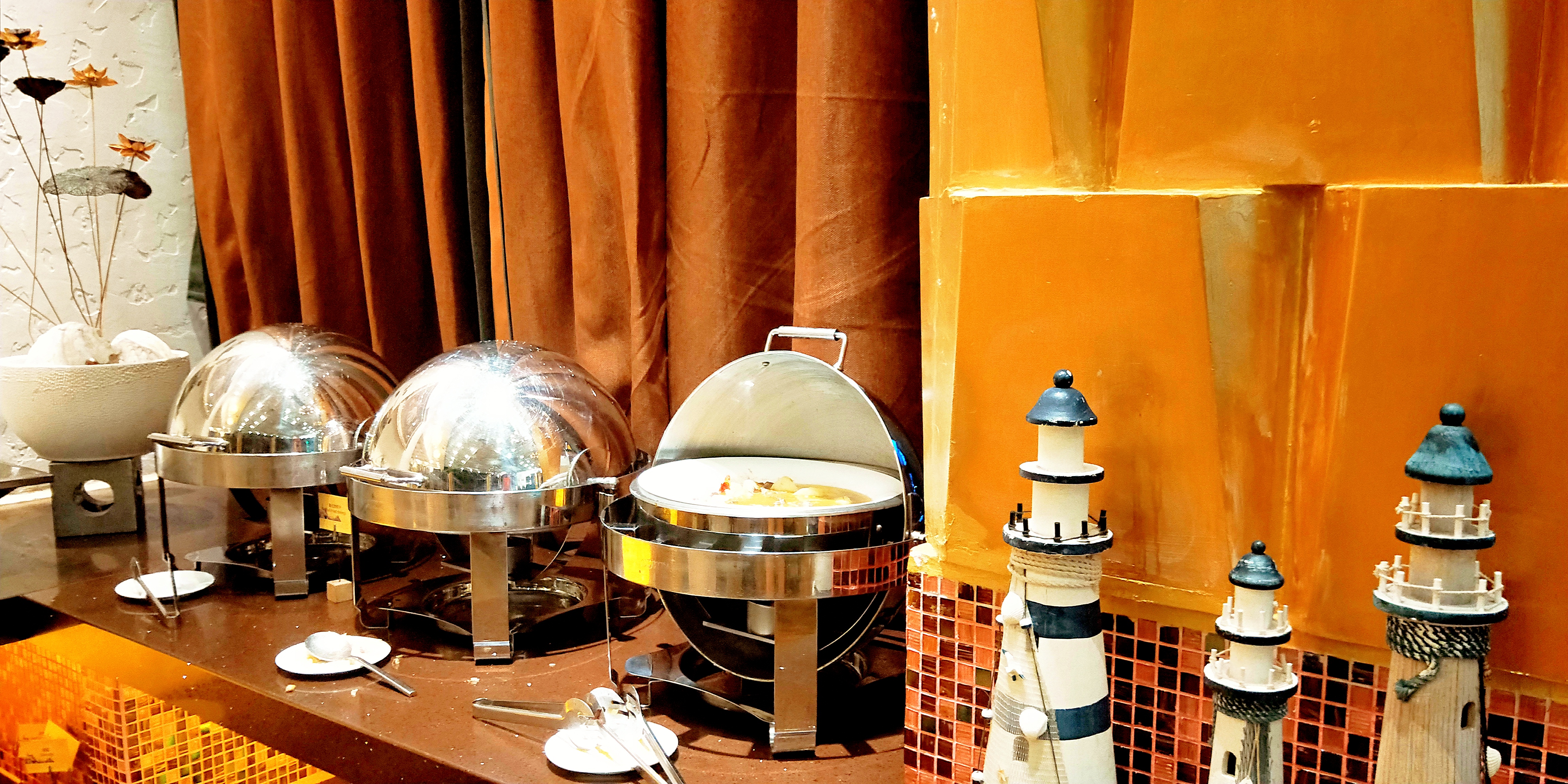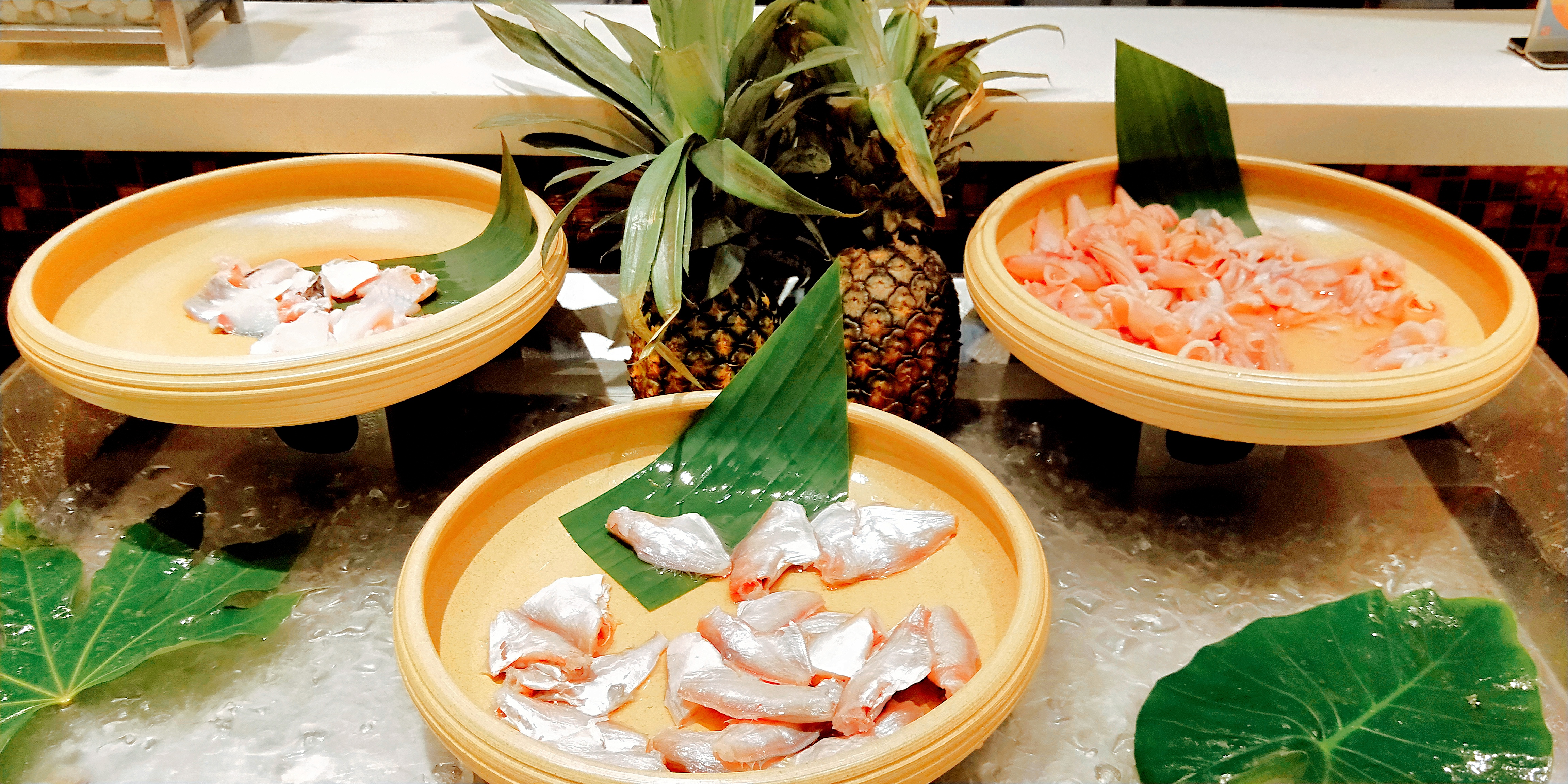 很早之前在七月份的时候就跟朋友每人买了一张火舞泰的自助火锅券,预约的是九月份的就餐时间,火舞泰•泰式火锅餐店名字听起来感觉会很不错,在世纪城的假日酒店西楼的19层,过来这里乘坐地铁到世纪城站下车,步行过来这里大约10分钟左右。 营业时间是下去六点钟开始营业,我们到店的时候店里客人不多,把预约的电子券码拿给服务员拍照就可以就餐了。大厅里三排长桌并列着,感觉是吃长桌宴的赶脚。当坐满客人的时候会觉得有点拥挤。 这里的锅底有冬阴功汤、椰奶汤、菌汤三种口味可选,椰奶汤是之前没有尝过的口味,入口的食物有一种奶香味。 这里的入口里面左手边是几种不同口味的点心,自助饮料和冰粉均挨着排列。 右手边是水果摆架,水果的装盘不错,种类一般般多吧。 火锅的蘸料品种相当齐全,各种配料一一排序。 每桌会根据人员数量搭配一份海鲜拼盘,好看好吃。 其余的菜品就是自助了,可以到自助区选择自己喜欢的,其实这里的海鲜种类不多,可选的就比较少了,素菜种类是一样的少,如果是按原价来吃的话感觉会很不划算,按我们购买餐券的价格来说的话性价比一般。 在餐厅外还有一个露天场地,小朋友很喜欢在露天场玩,高楼凉风习习。 话说这里每天都会有摇一摇的活动,按排名有礼物赠送,只是没讲清楚规则,我们这一大桌都以为是开始时赶紧摇排在前面的就可以,原来是一段时间内摇的次数最多的排名赠送礼物,以后来吃的朋友要加油摇呀摇。