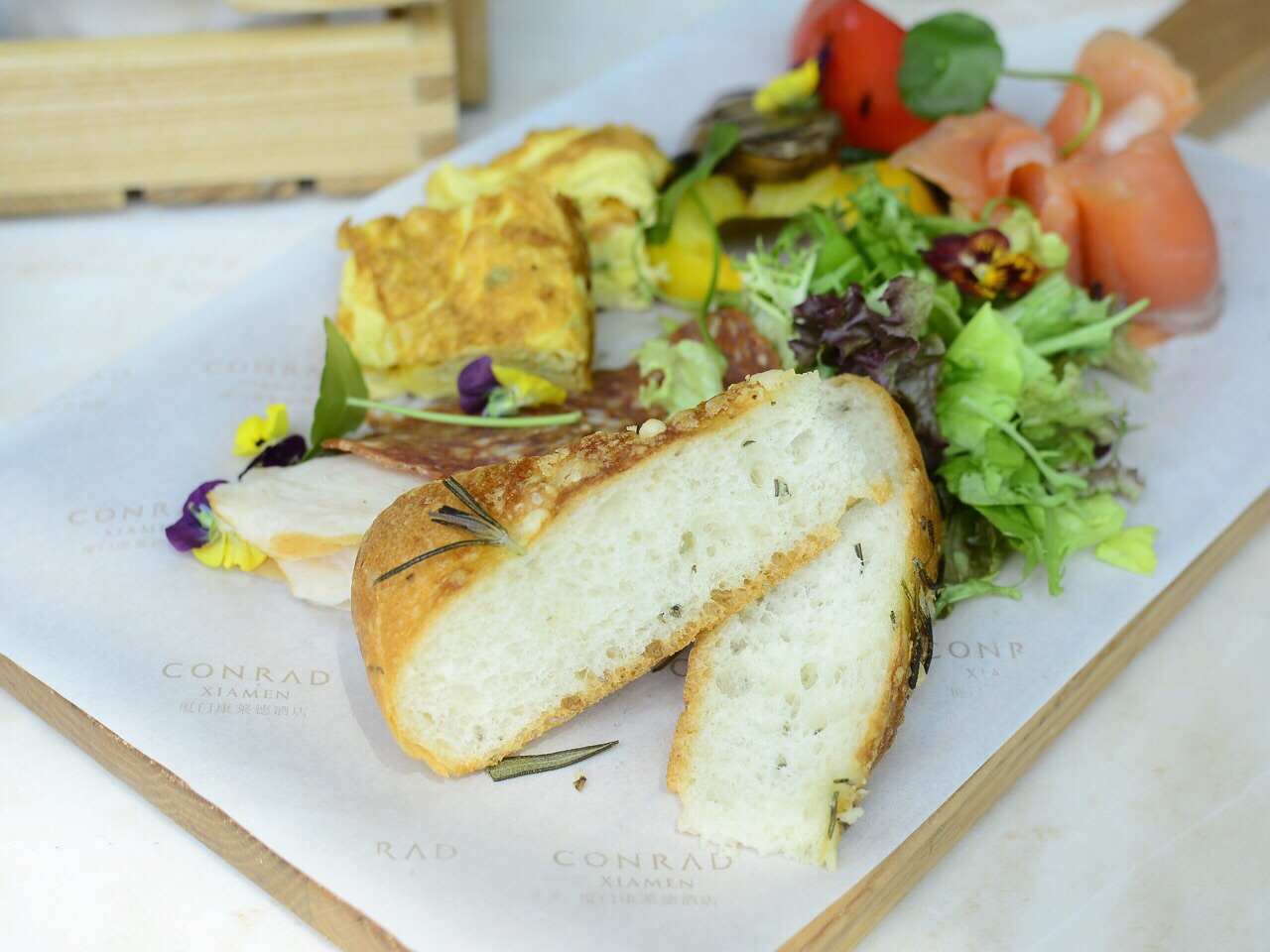 听闻康莱德海岸餐厅最近新推出了地中海风早午餐,brunch 风现在好像还没那么风靡,在一周忙碌的工作后,周末睡到自然醒,美美的一个懒觉之后再来一顿brunch 那是再惬意不过啦! 54搂的无敌海景就已经让人陶醉了,再加上这意大利地主厨的精致的brunch ,简直不要太好! 班尼迪克蛋,brunch 之中的经典之选。它是由英式马芬+菠菜+水波溏心蛋+荷兰汁组合而成的,被黄油煎到酥脆的麦芬,菠菜,水波蛋和荷兰汁的搭配,堪称完美!帕尼尼三文治搭配煎蛋和帕玛尔火腿配薯条,面包表皮比较扎实有嚼劲,整体的感觉还不错。南瓜汤也超喜欢的,味道浓郁,放了姜口感好极了!芒果冰沙,酸甜可口也挺解腻。 随着生活质量的提高,工作之余约上家人或是好友来享受一番,度过一个美好的周末实在是美滋滋~~