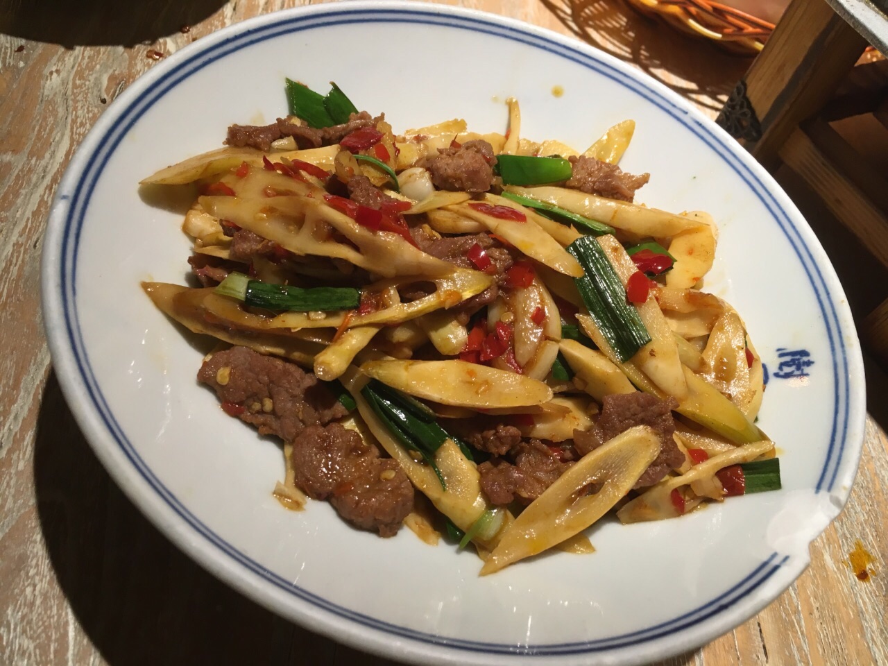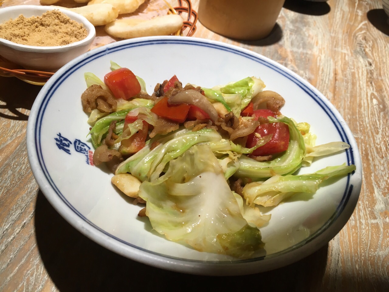 其实还是蛮好吃的,山竹笋很嫩,肉片也很嫩很入味。蘸黄豆粉,太赞了! 晚上生意很好,不过不用等位