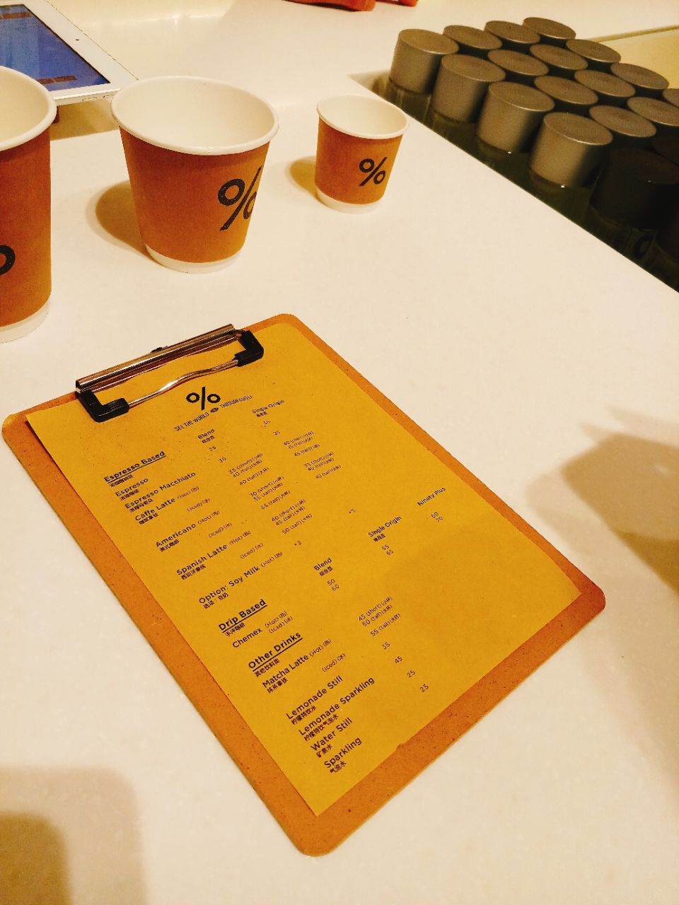 之前在香港喝过几次 日本的还没尝试过 上海开了第二家 总想着要来喝喝看的 工作日的下午一个空位都没有 还是那种都不肯走的状态 点了杯豆奶拿铁 还蛮浓郁的 服务员都是小鲜肉 作为一个咖啡店 店铺面积超大的 价格和香港持平了差一个汇率 去冰的会看起来少一点 坐在室外吹吹风很舒服的