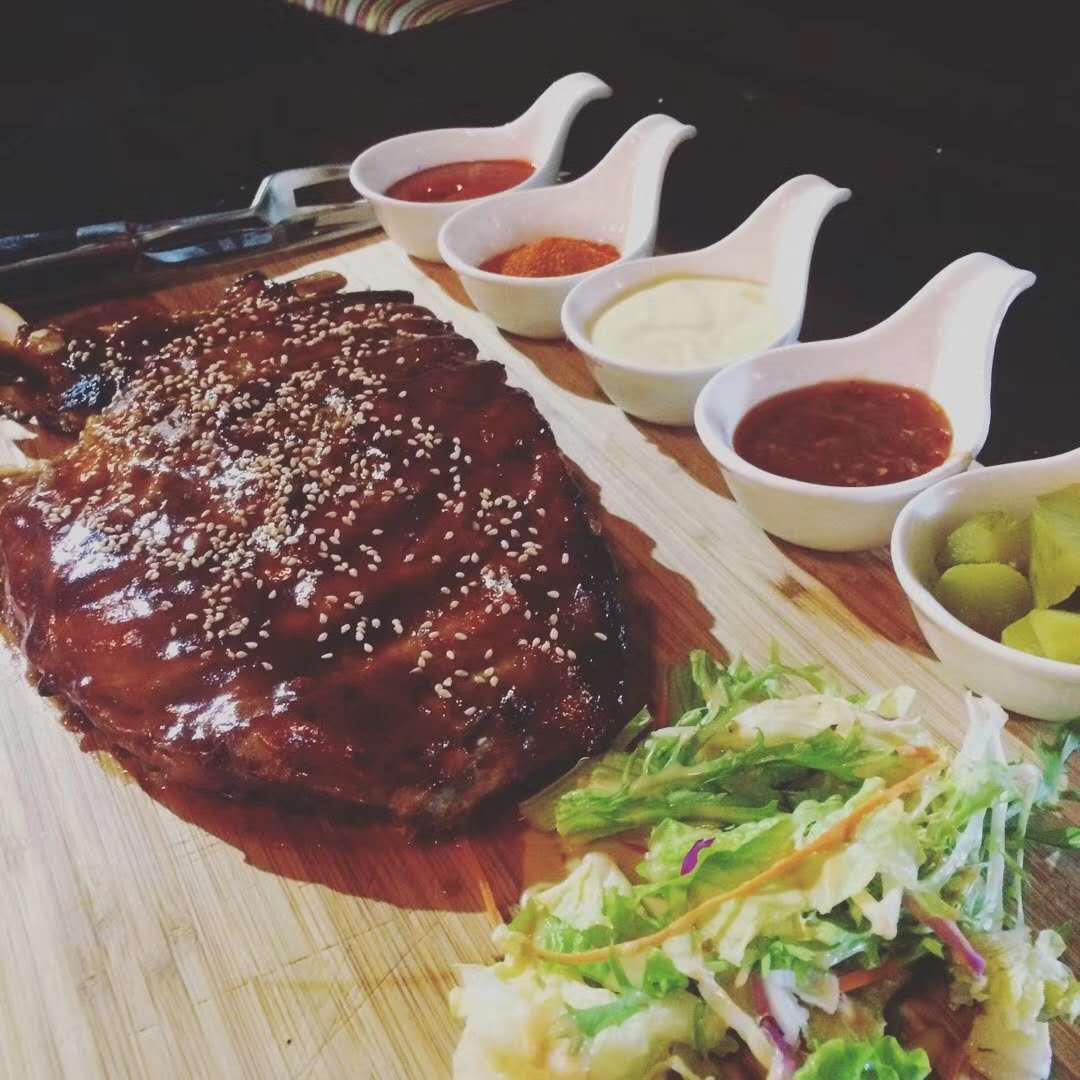 位于工体北门,非常好找,店内装修充满运动气息,中间还有一个类似篮球馆中央的那种四面屏,是个看各类体育比赛的好去处。店内还有许多娱乐设施,台球桌,飞镖,游戏机等,感觉店家一点都不想让你闲着哈哈。 特地为他家的汉堡而来,果然没有失望,真是大块肉,两层肉饼,味道也很棒,非常香。猪排也是超级大,服务员端上来的瞬间我就惊呆了,猪排还配了四份料,味道很赞,肉质鲜嫩多汁。 服务很棒,服务员都很负责,很周到,上菜也快。