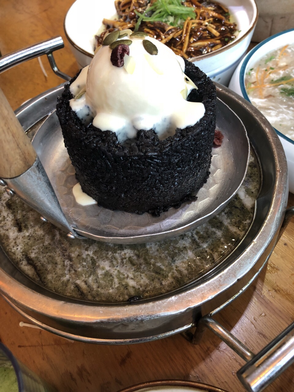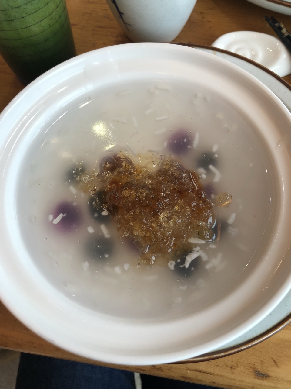 特别推荐桃花坞酒酿桃胶,三色的小丸子加上酒酿加上桃胶,清甜爽口位于万象城内,一半的座位是临湖,一边看风景一边品尝美食。 特别推荐桃花坞酒酿桃胶,三色的小丸子加上酒酿加上桃胶,清甜爽口。 燃烧吧,蜂窝煤:黑米做成蜂窝煤形状,加上一个冰淇淋,很有创意。