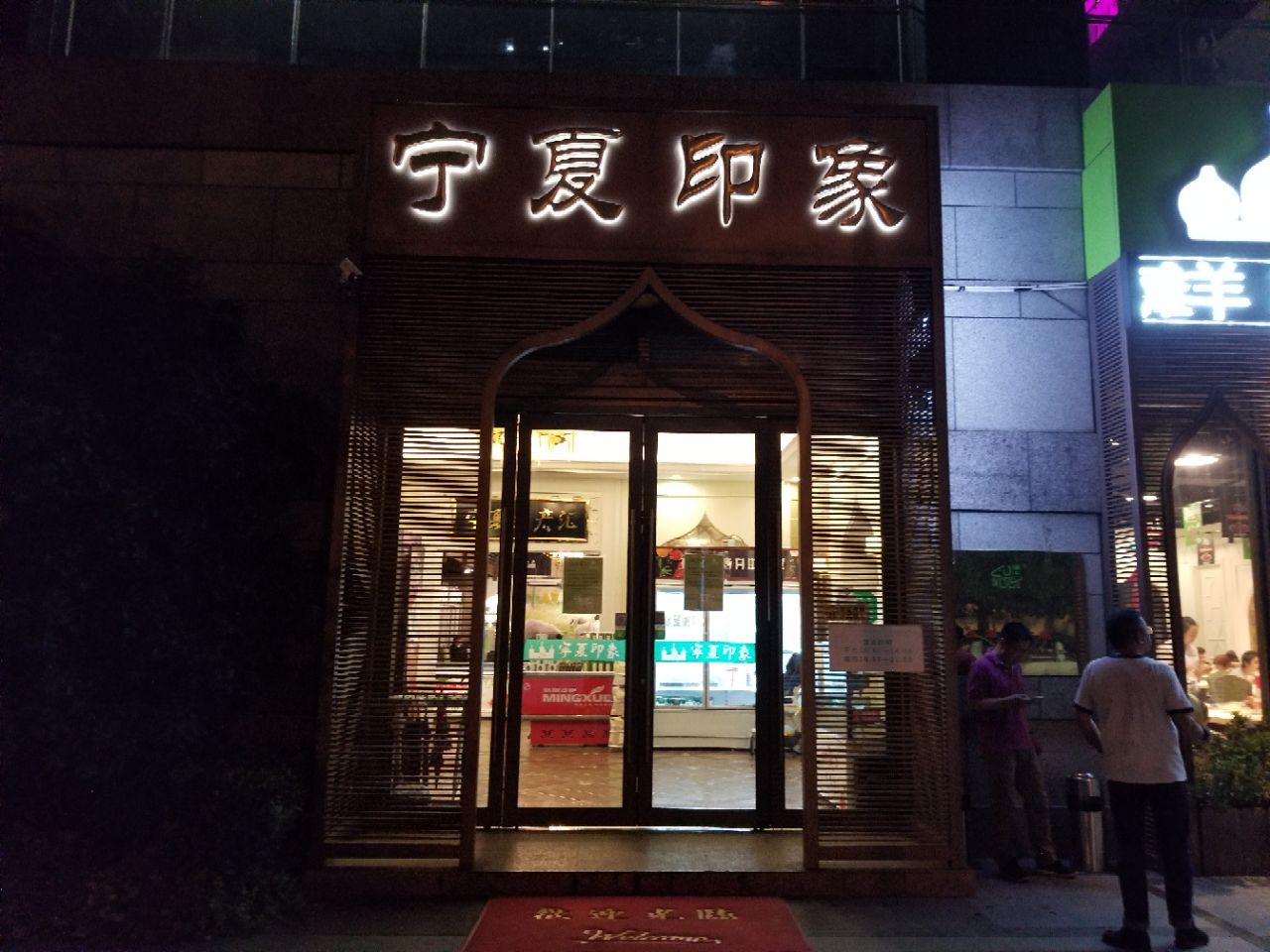 非常不错的一家饭店。店里羊肉味道不错,烤羊肉串和新疆的还不一样,味道特别。宁夏菜很地道,而且量很足非常不错的一家饭店。宁夏菜很地道,而且量很足。这次是同学聚会选择在这家店。店里羊肉味道不错,烤羊肉串和新疆的还不一样,味道特别。