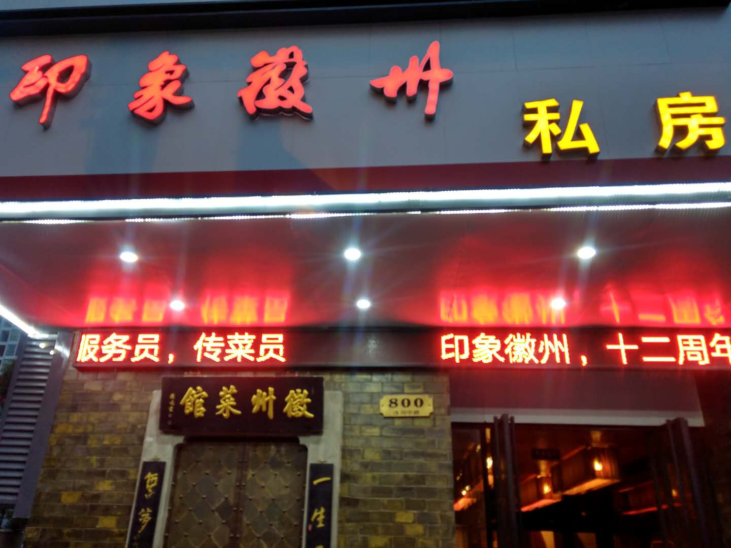 位于上海市的一家印象徽州店。在本市有几家分店,位置大多位于市中心地段,生意一般来说还是比较好的。 印象徽州以安徽菜为主的,徽菜平时不大吃,第一次吃感觉还是可以的,印象最深的是他家的徽式酱鸭,口味与本帮酱鸭显得有所不同,徽式酱鸭口感类似于腊鸭,偏咸,与米饭同吃比较好。其余小吃若徽式炒饭也是别具风味,炒饭微辣,有鸡蛋、香菇丝、火腿丝等等佐料,口感较好。 此家店算不上高大上,然价位较为合理,菜肴种类亦不少,口感较佳,建议大家前来品尝。