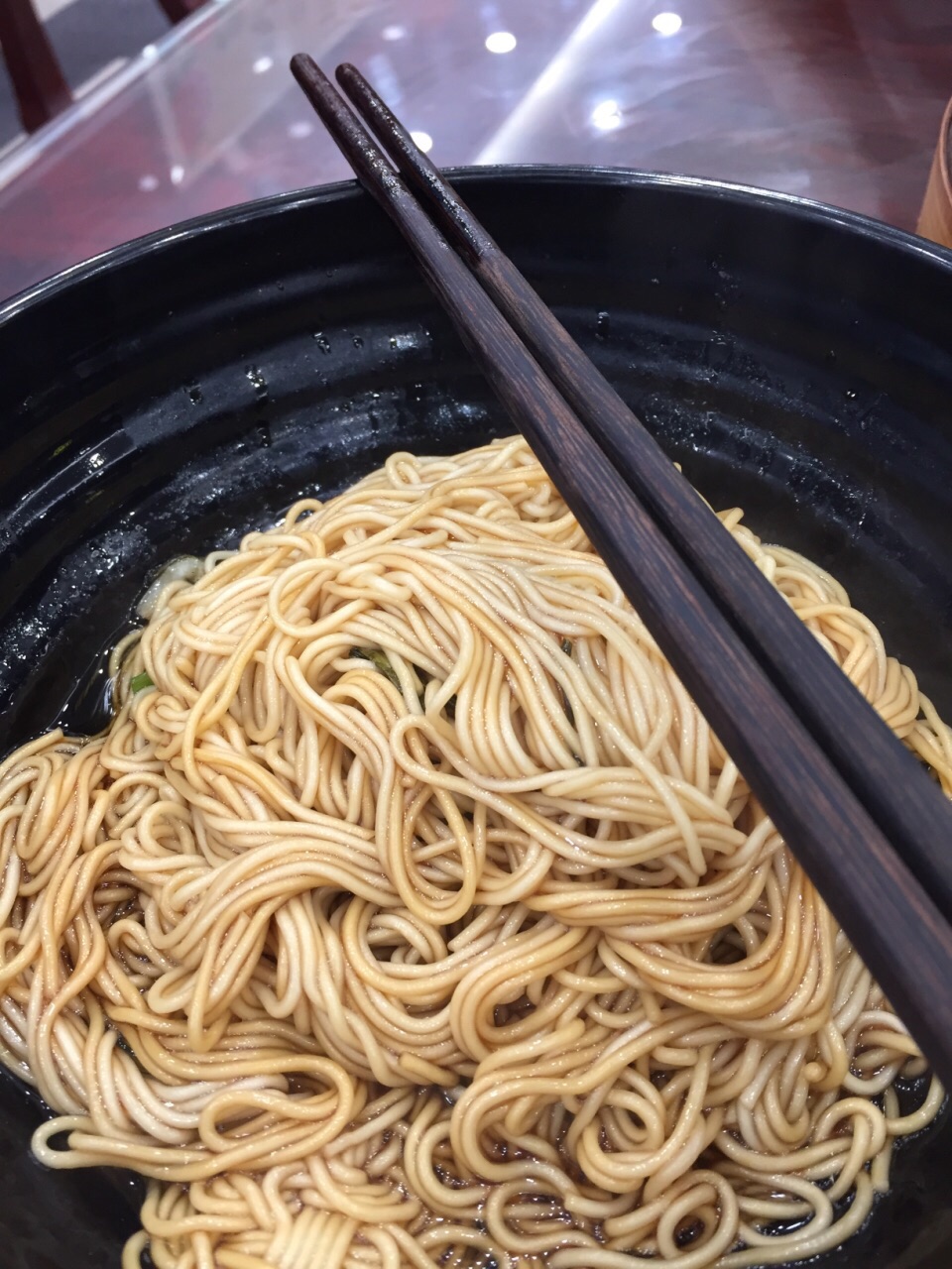 开在莘东路丽宝广场的这家老盛兴汤包馆,人气很旺,很喜欢吃这里的面条,今天周末,等女儿做完功课,来这里七点钟了,很多品种的面条都没有了。点了一碗辣三丁,一碗葱油拌面。话说他的葱油拌面真是很好吃。葱煎得很香,应该不单单是用酱油拌的,味道比较特别。今天吃的汤包肉也感觉比以前用料好一点。