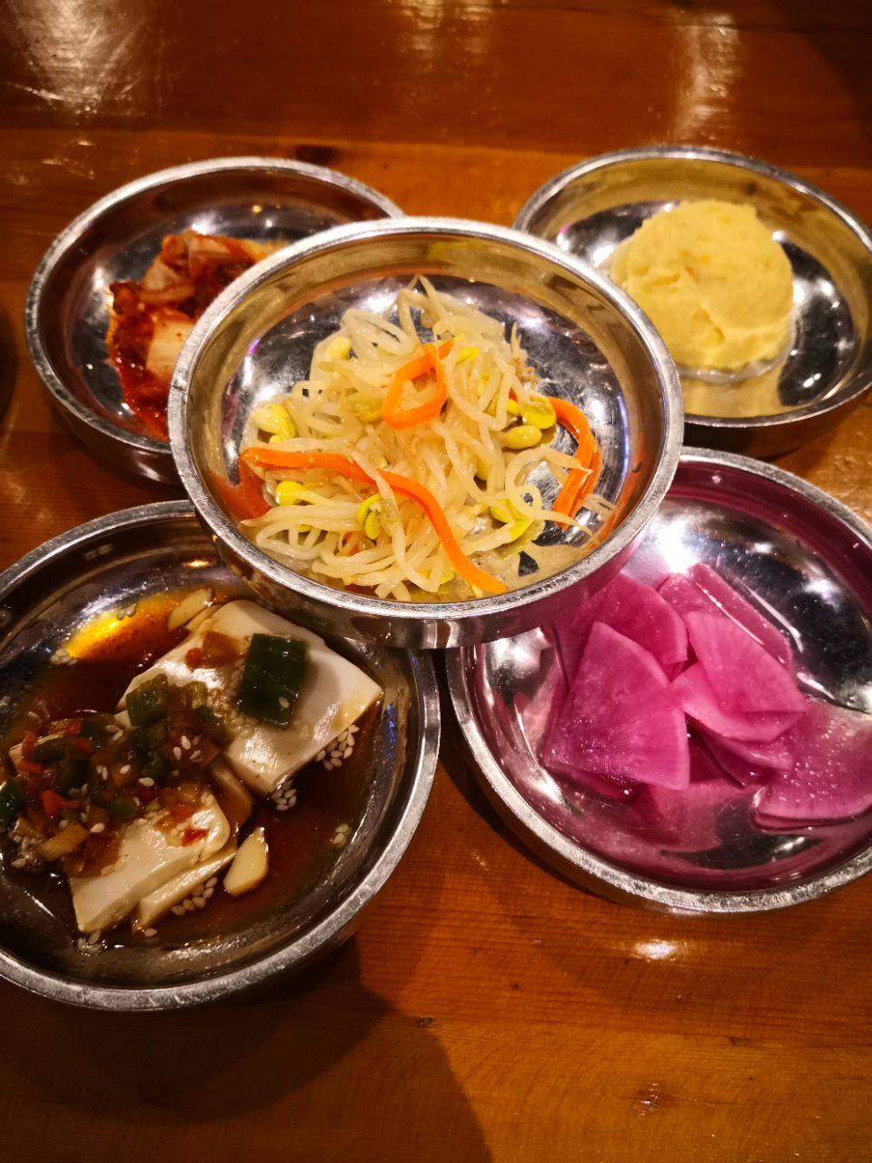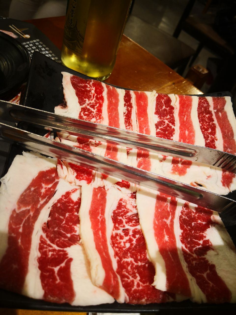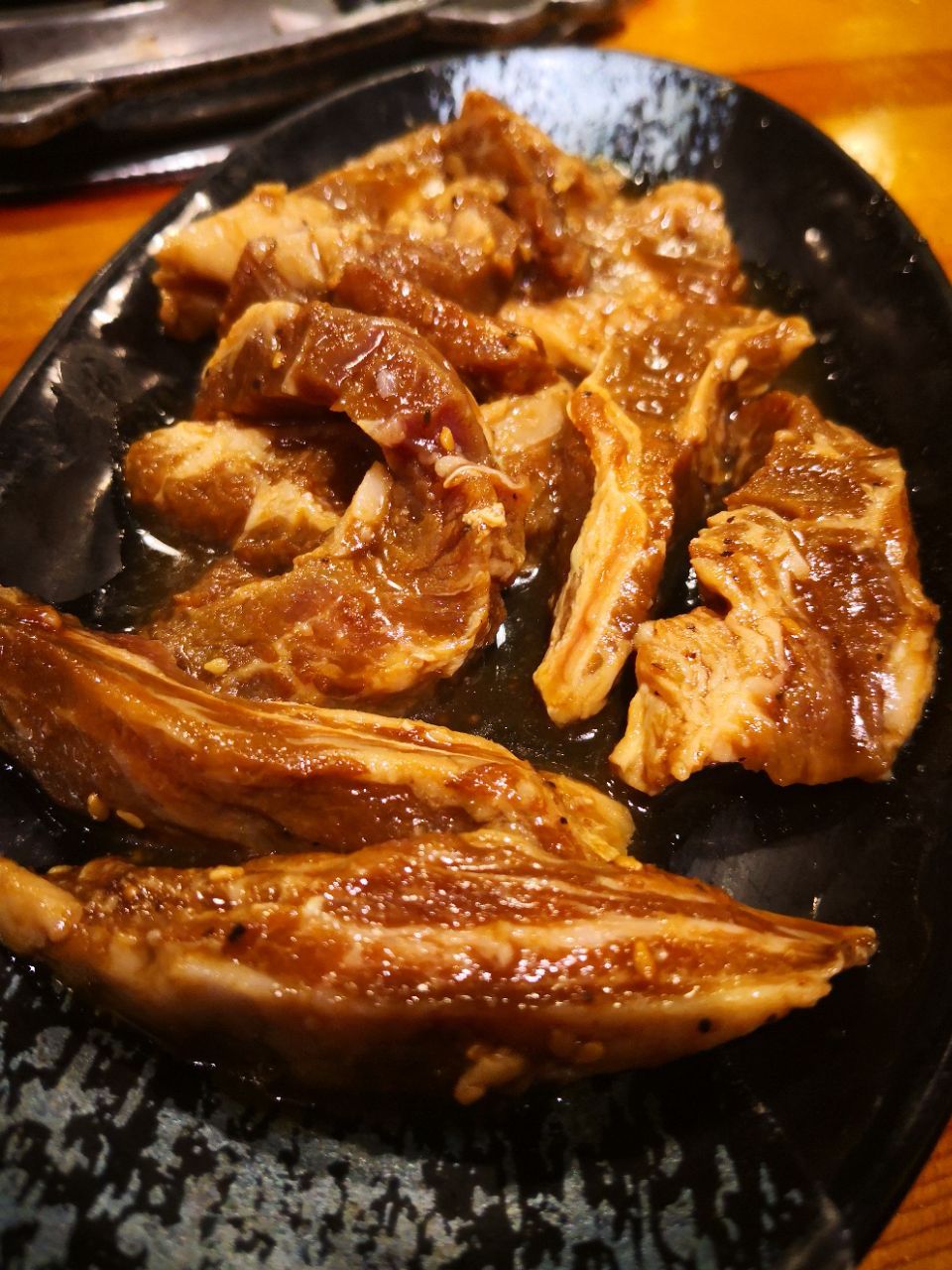 李老师周末烤肉综合症急需烤肉治疗 打开点评,发现金沙这边有两家韩式烤肉,于是紧急前往。 唯成和首尔这两家店都紧挨着,不晓得吃哪家,陷入选择综合征,而且门口都排队,只有一边叫一个号,谁先喊吃哪家。 还是首尔这家先喊号,这算是缘分,就选这家 坐下先送几个小菜,就只有土豆泥好吃 网上说的厚切五花肉很不错,所以就点了一份,刚端上来的时候感觉就是两大坨肥厚的猪肉,李老师还有点后悔应该点薄五花,但是但是,一定要多烤一会,外皮焦脆了以后,再用剪刀剪成小块,蘸上酱汁,真的是外脆里嫩,非常好吃,从最开始的不看好到后面的忘不了,所以说很多东西都要去尝试才知道结果啊。给这份肉点赞。 牛小排也不错,提前码了料的, 工作人员团队很年轻,团队感觉好团结,效率相当快。隔壁桌从结账,清理,准备新桌只用了几分钟,几个年轻人走路都是噌噌的。。。带风