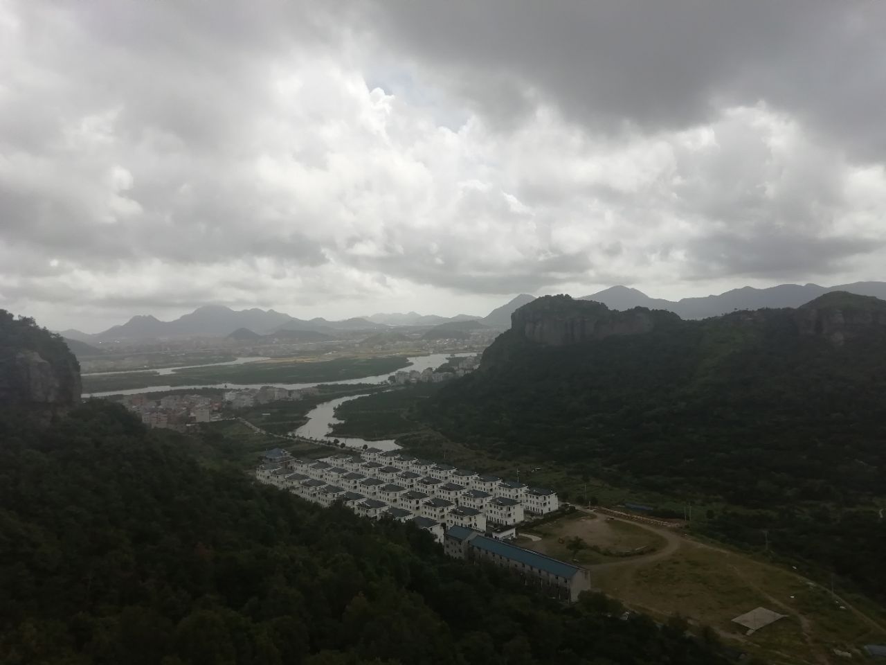 登上石柱峰,俯视桃江十三渚,风景还是不错的。 石阶上有些青苔,有的地方要注意脚下安全